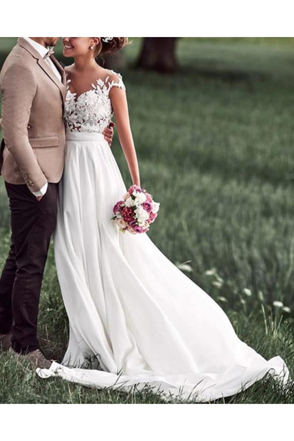 Elegant Chiffon and Lace Wedding Dresses Bridal Gowns 903006