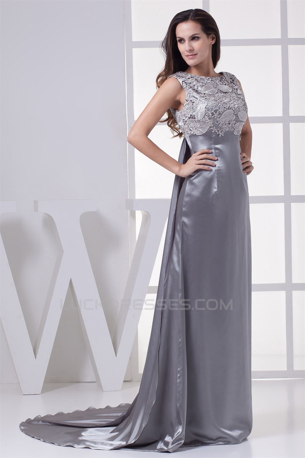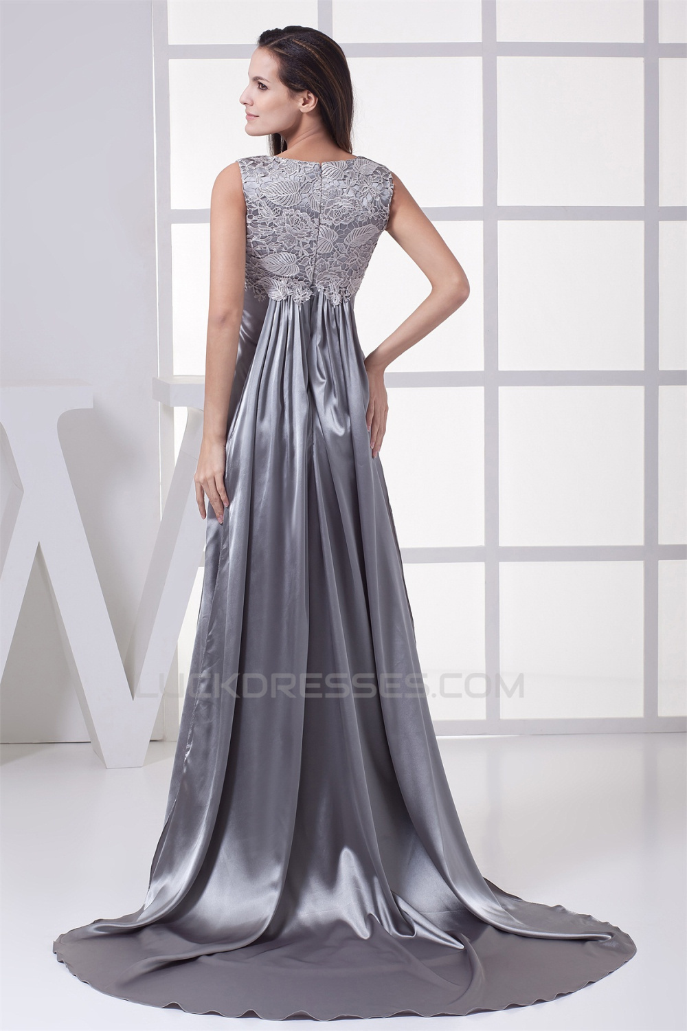 Elegant Lace Silk like Satin Long Silver Mother of the Bride Dresses 2040048