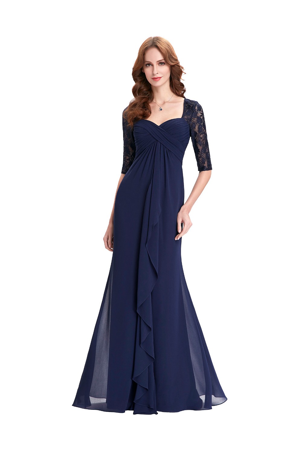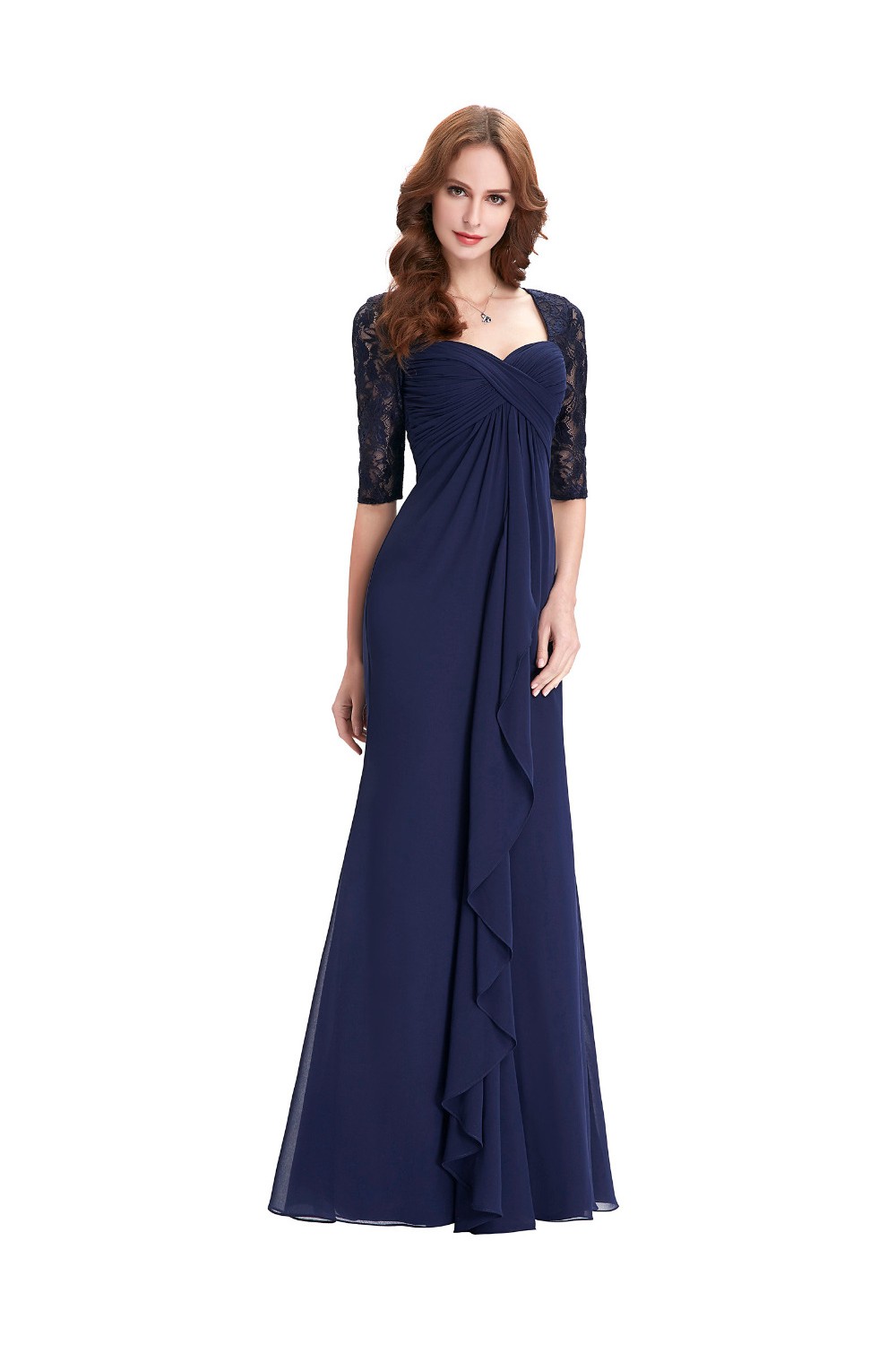 Elegant Long Blue Empire Lace Chiffon Mother of The Bride Dresses 602003