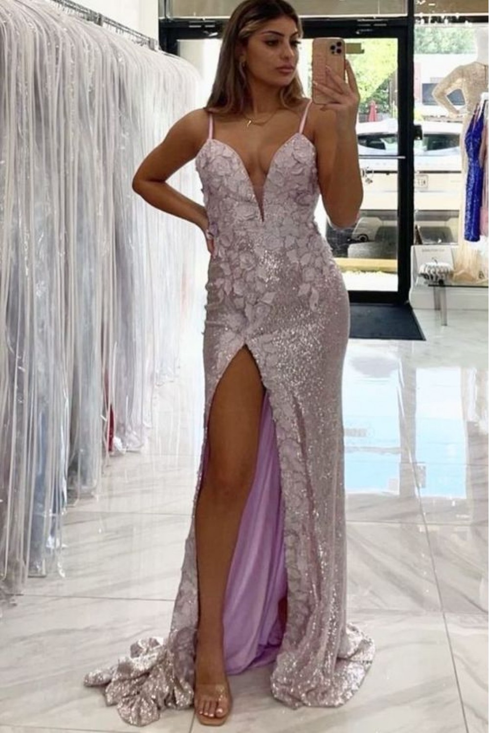 Elegant Long Silver Sequin Prom Dress Formal Evening Gowns 901447