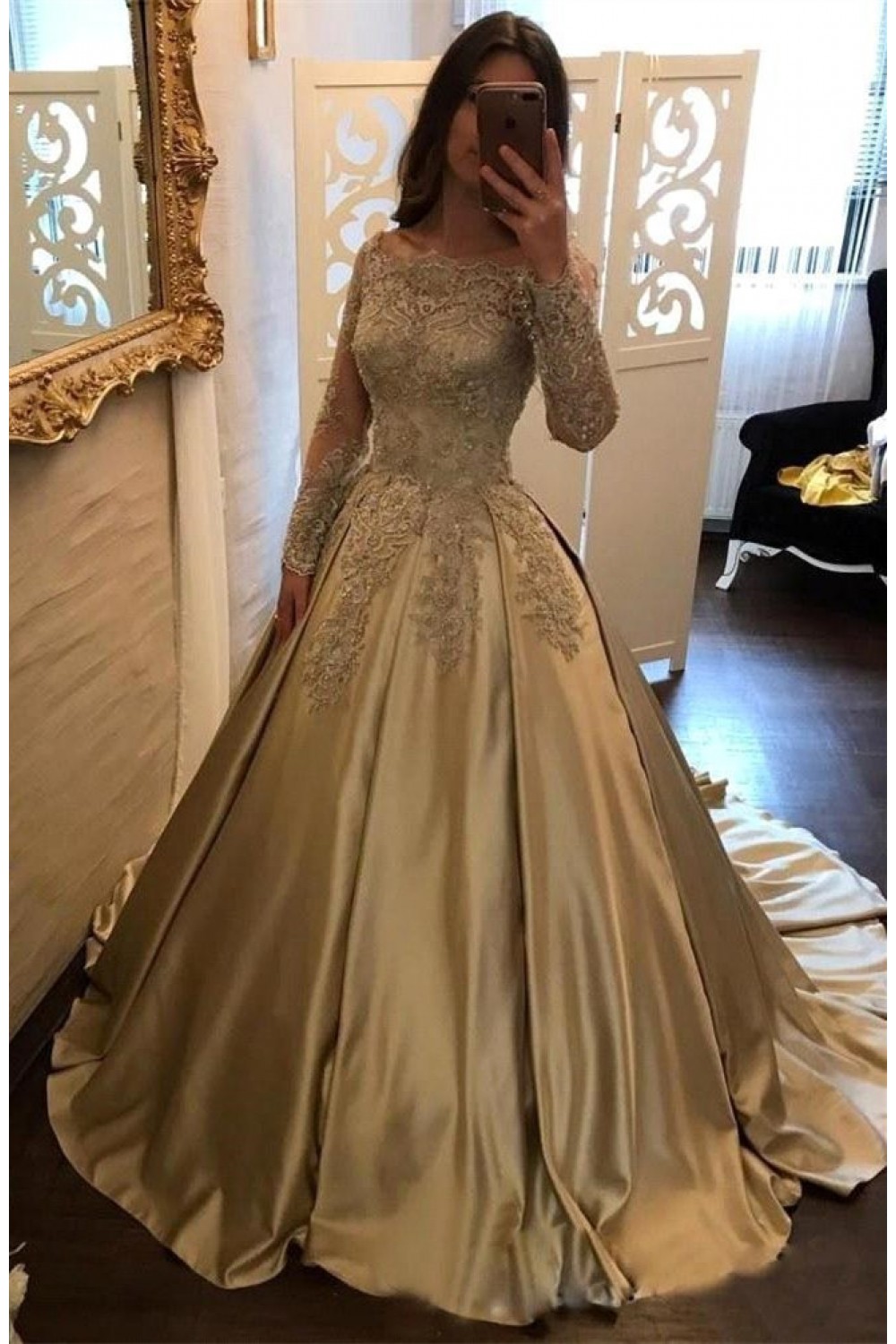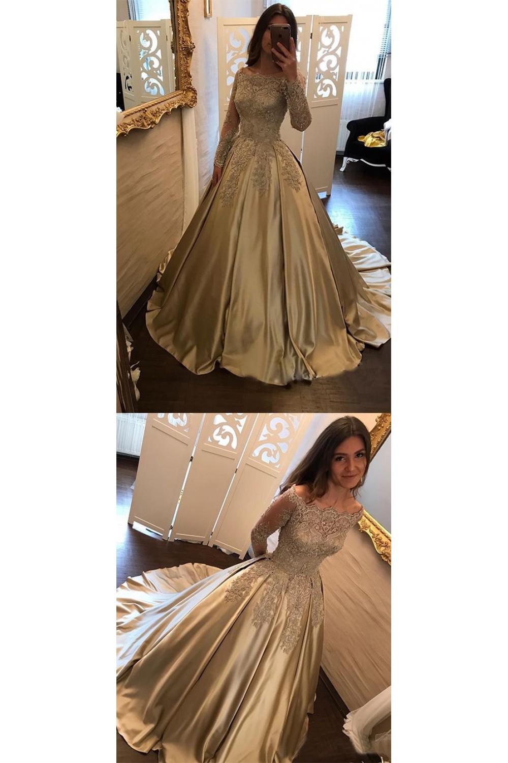 -57% Elegant Long Sleeves Lace Prom Dresses Ball Gown Evening Gowns 601005