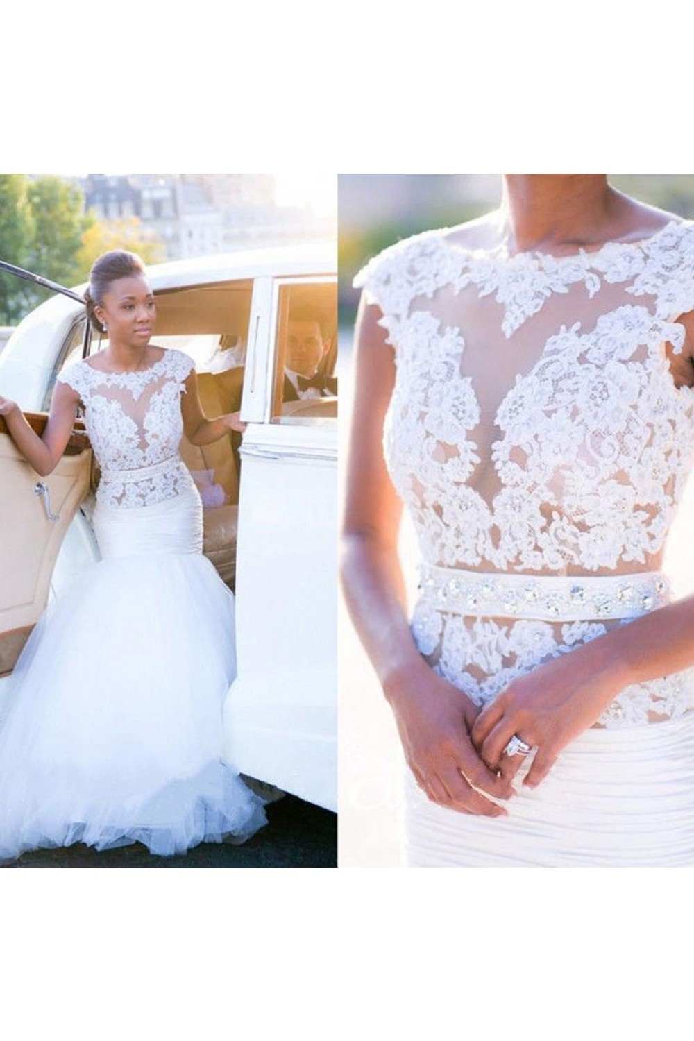 Elegant Mermaid Beaded Lace and Tulle Wedding Dresses Bridal Gowns 903211