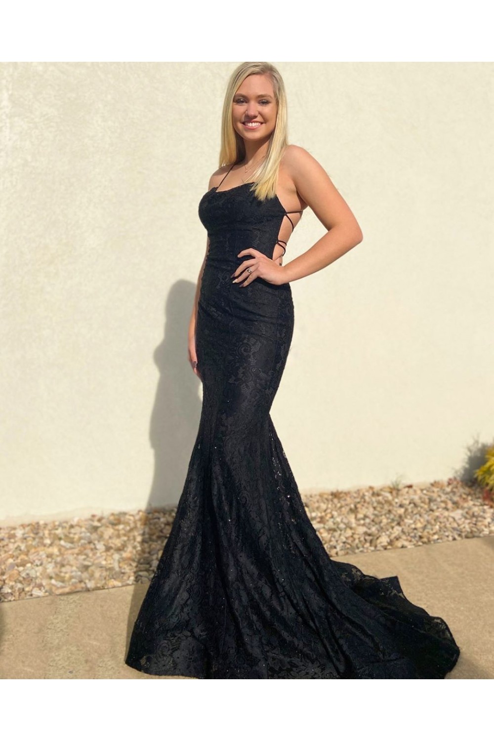 Elegant Mermaid Long Black Lace Prom Dresses Formal Evening Gowns 901642