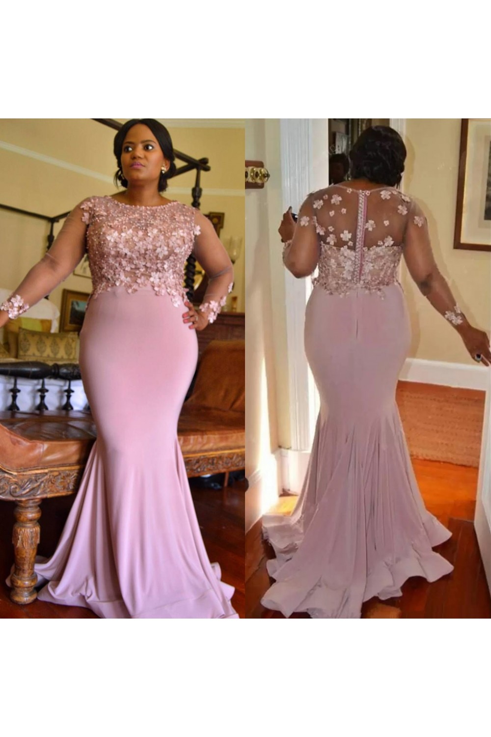 Elegant Mermaid Mother of the Bride Dresses with Sleeves 702102
