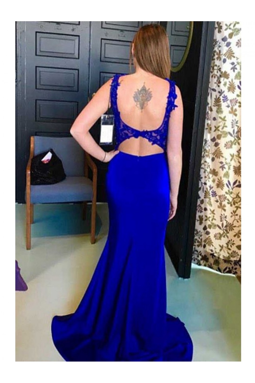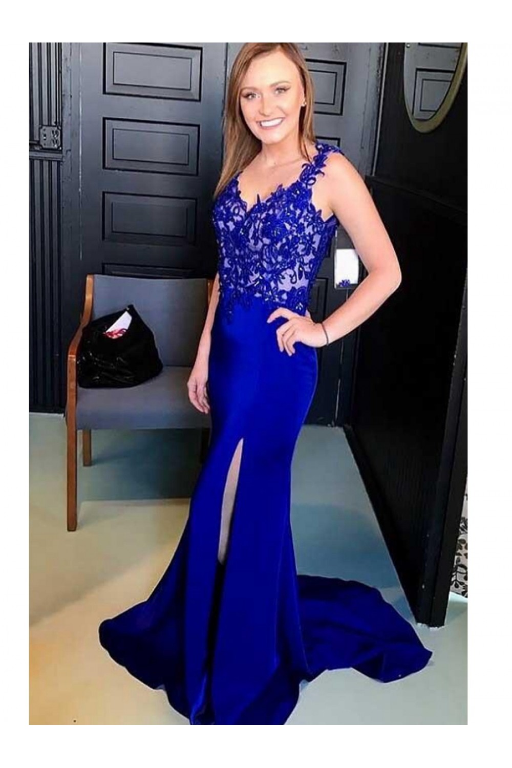 Elegant Mermaid Straps Open Back Long Prom Dress with Appliques Formal Evening Dresses 601369