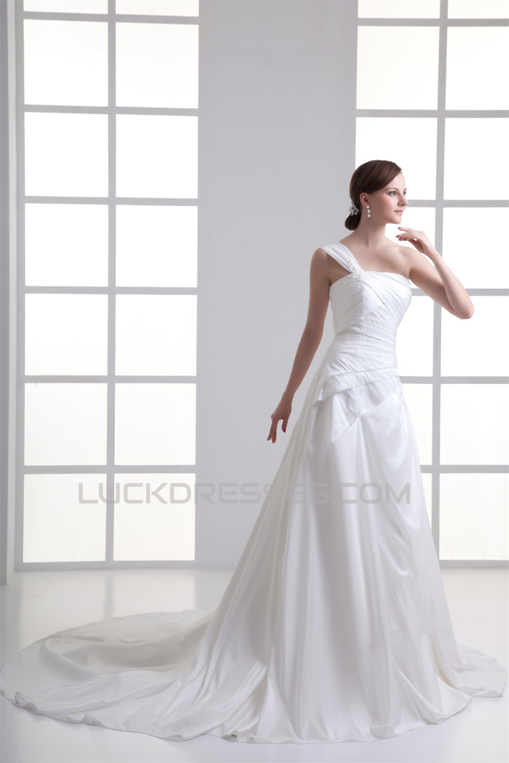 -50% Elegant One-Shoulder Taffeta Sleeveless A-Line Wedding Dresses 2031168