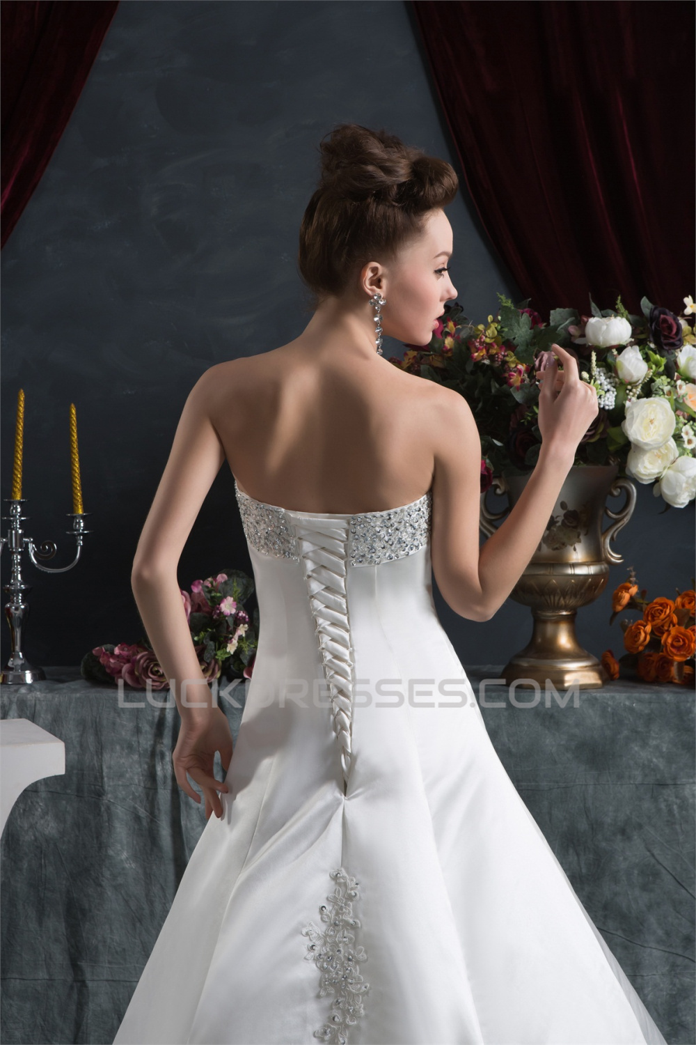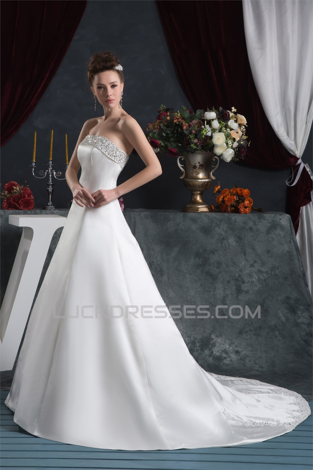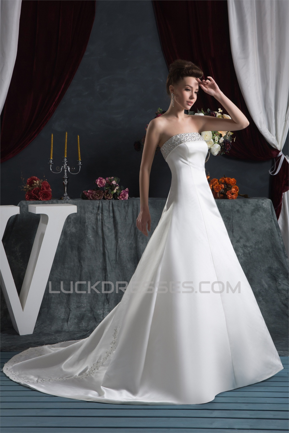 -50% Elegant Satin Strapless A-Line Sleeveless Beaded Wedding Dresses 2030667