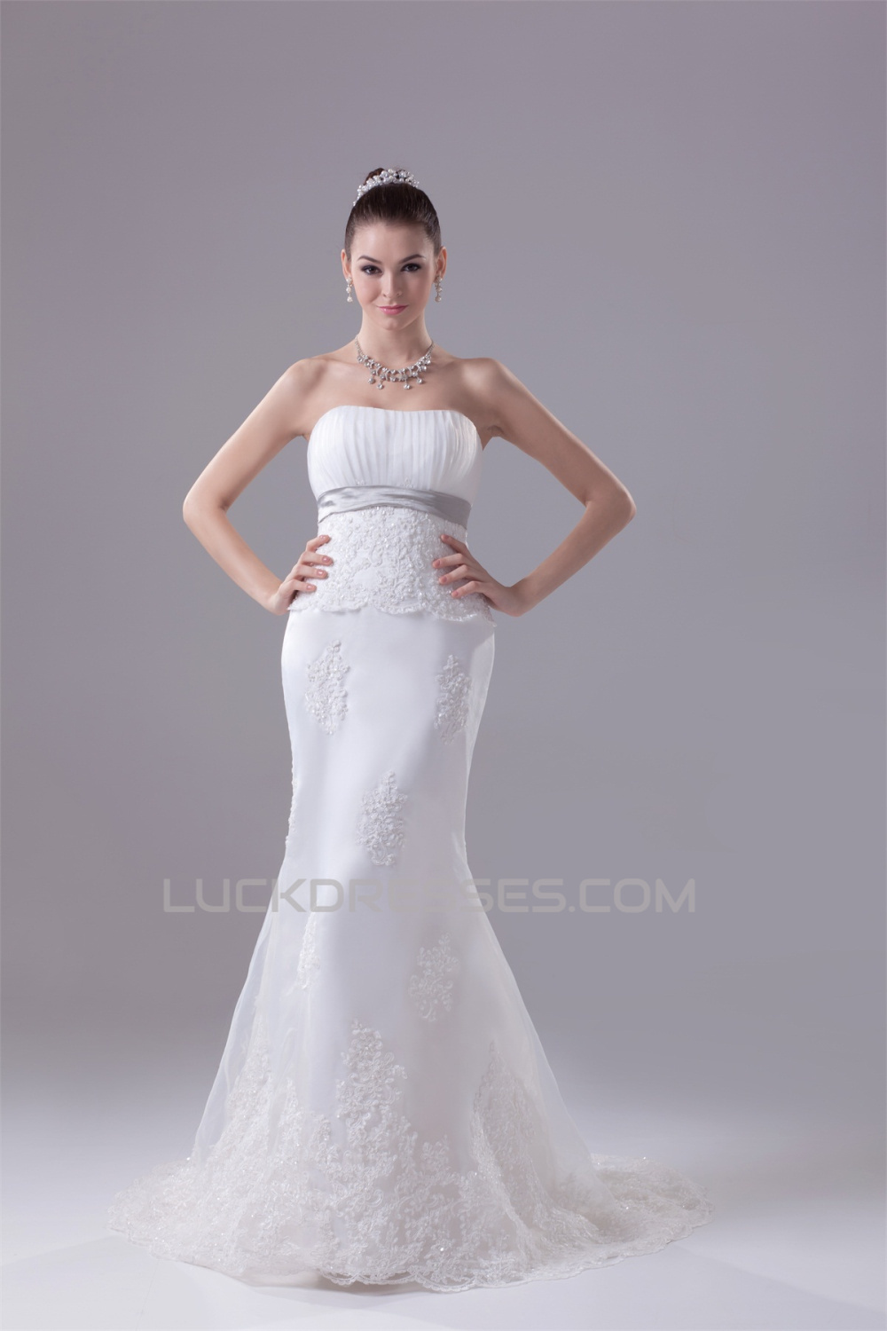 -50% Elegant Sleeveless Satin Organza Mermaid/Trumpet Wedding Dresses 2030127