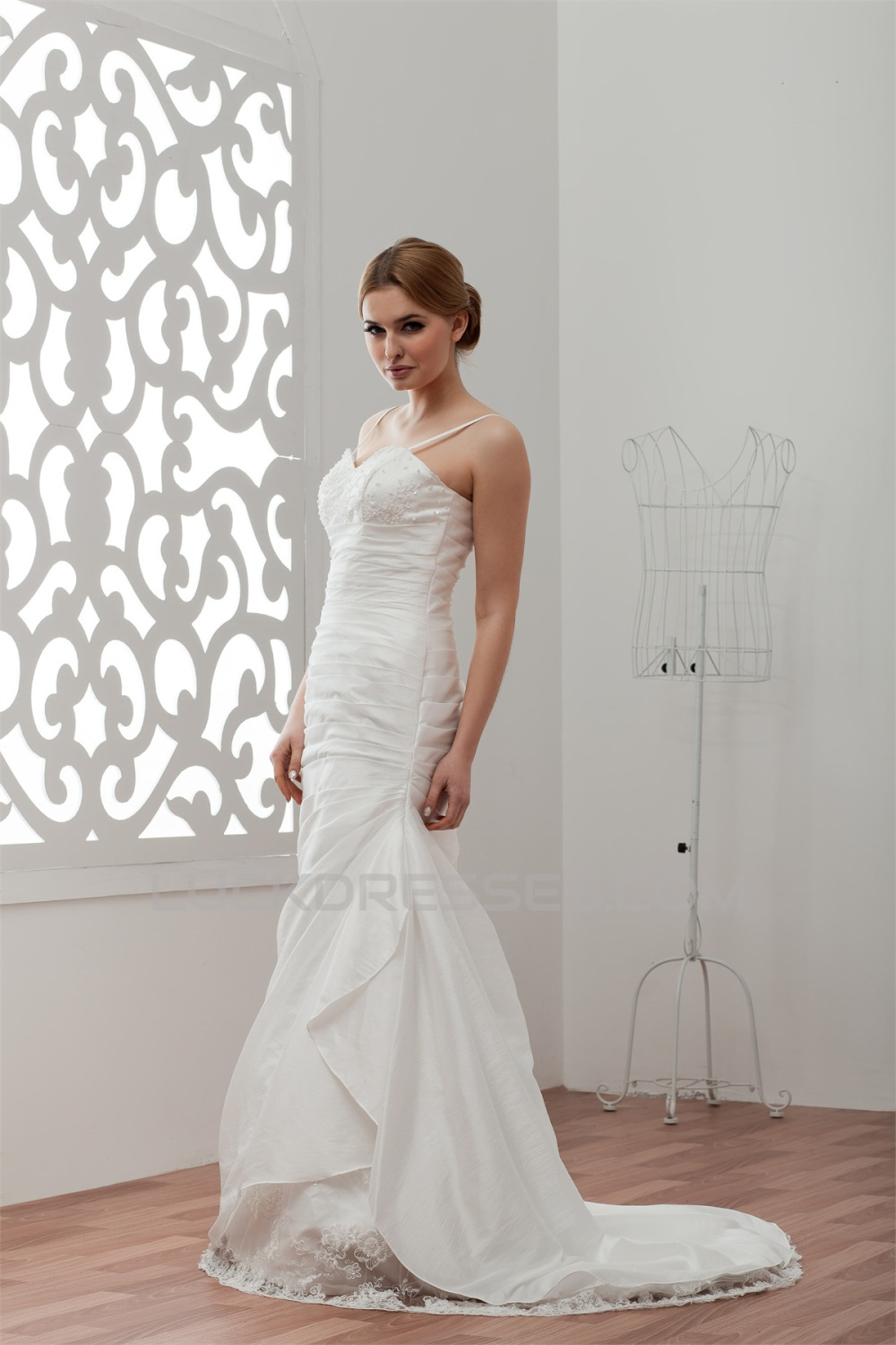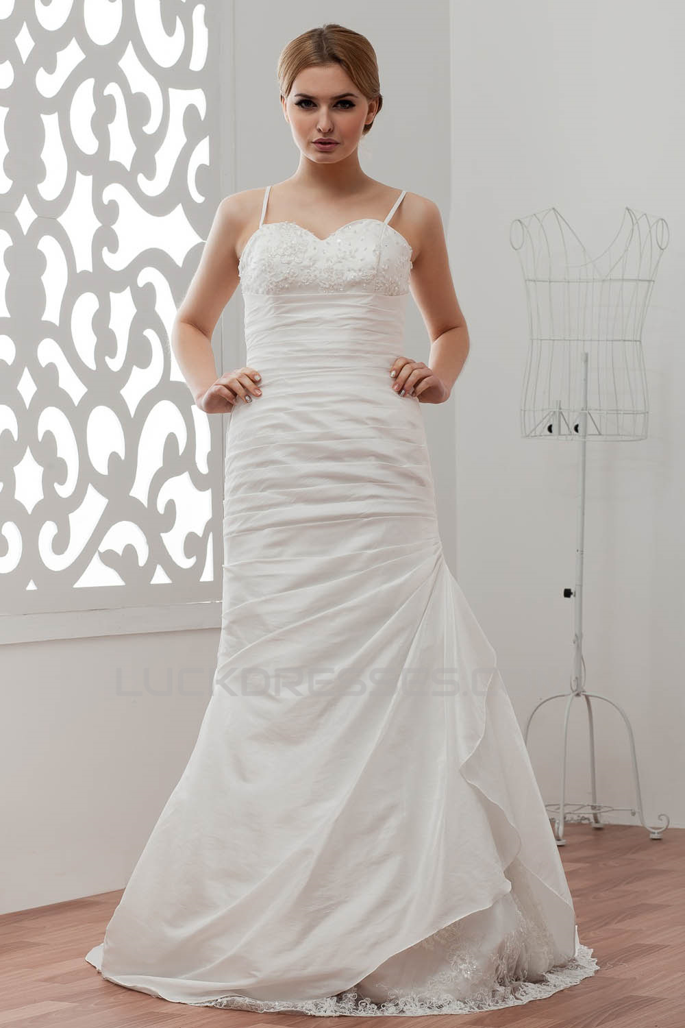 -50% Elegant Sleeveless Sweetheart Taffeta Lace A-Line Wedding Dresses 2030674
