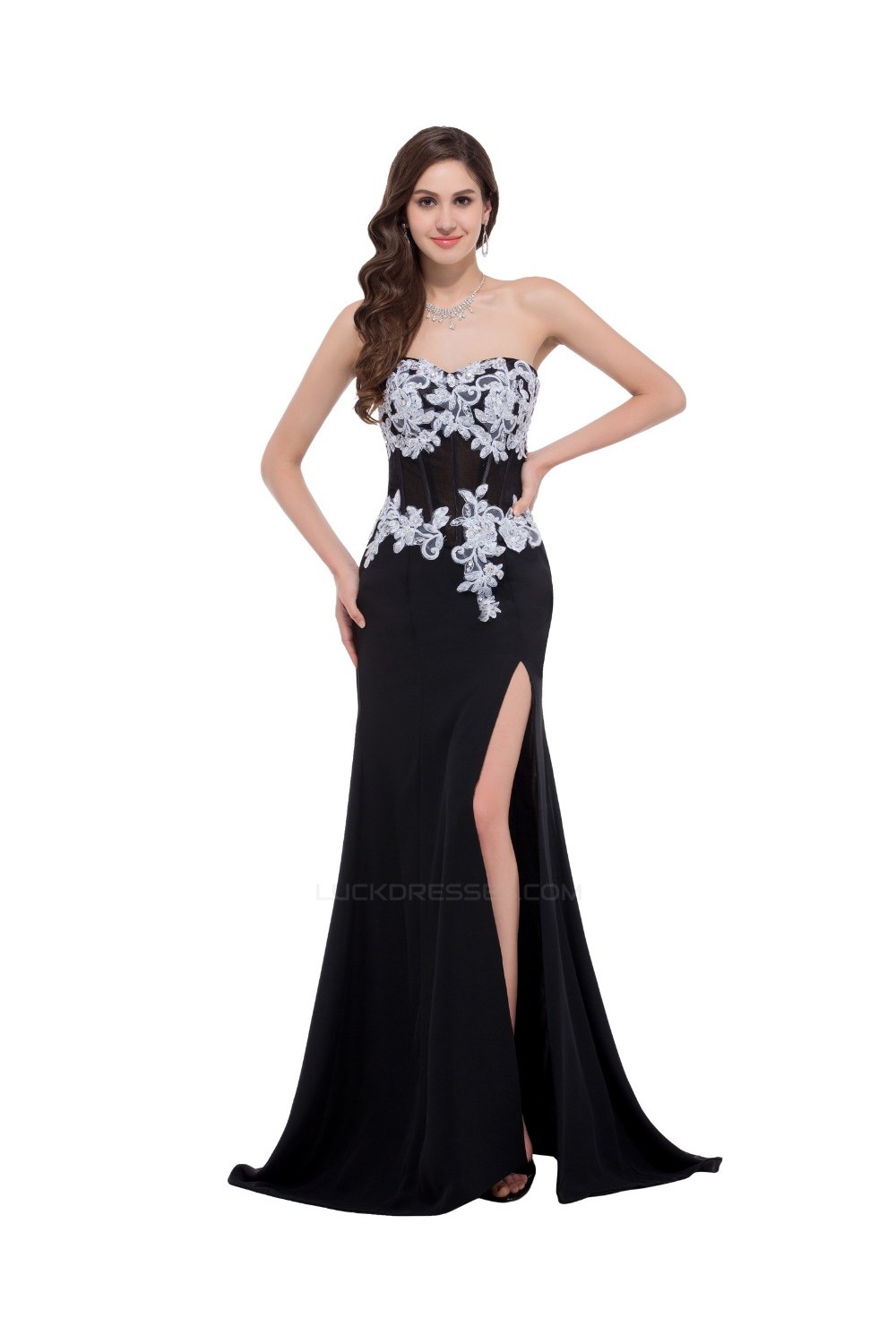 Elegant Sweetheart Split-Front Long Black Chiffon Prom Evening Formal Dresses ED011625