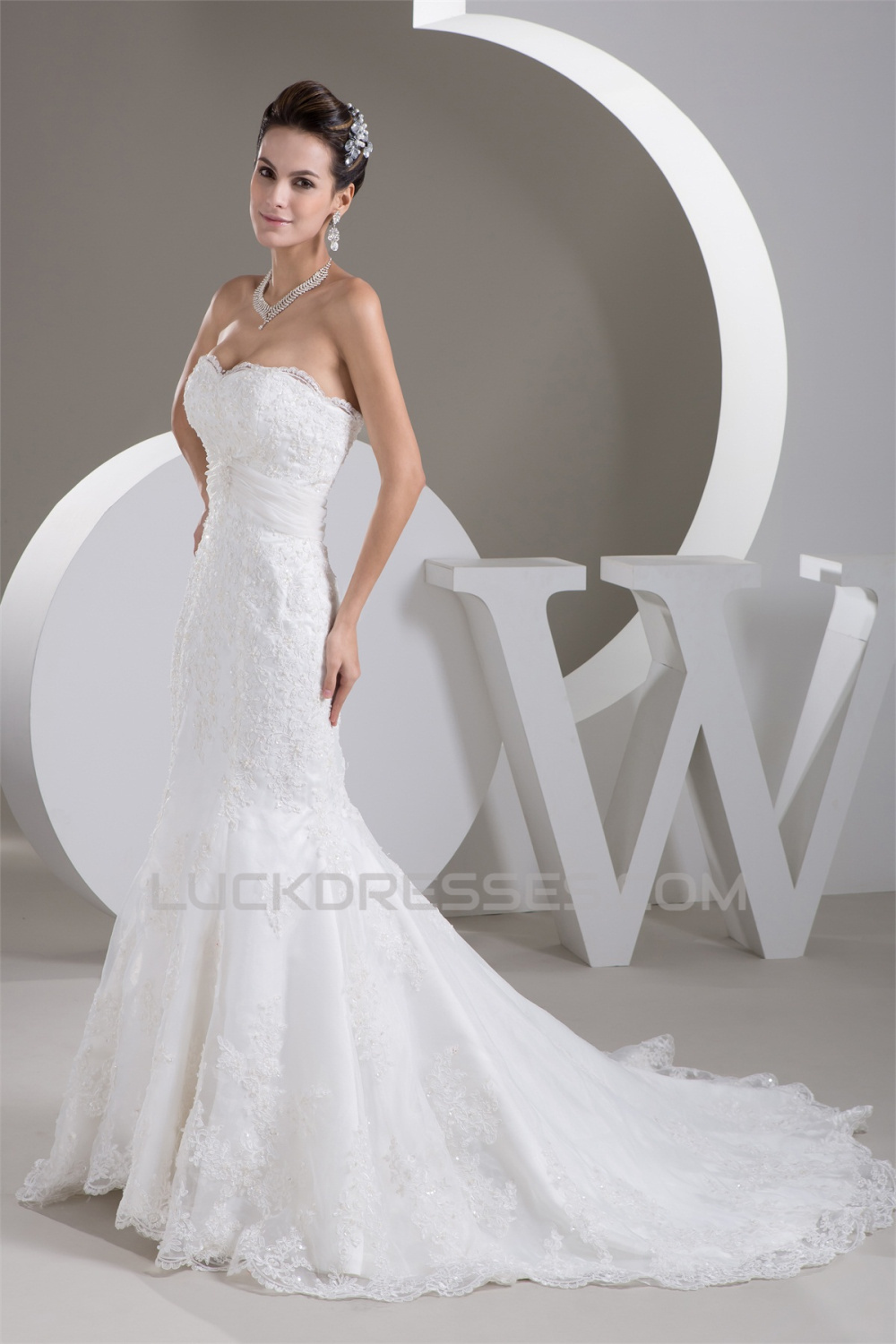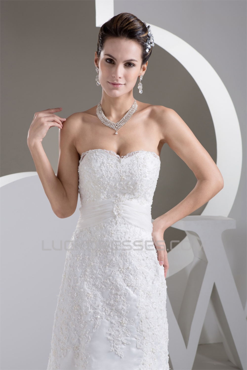 -50% Elegant Trumpet/Mermaid Sweetheart Satin Lace Sleeveless Wedding Dresses 2030744