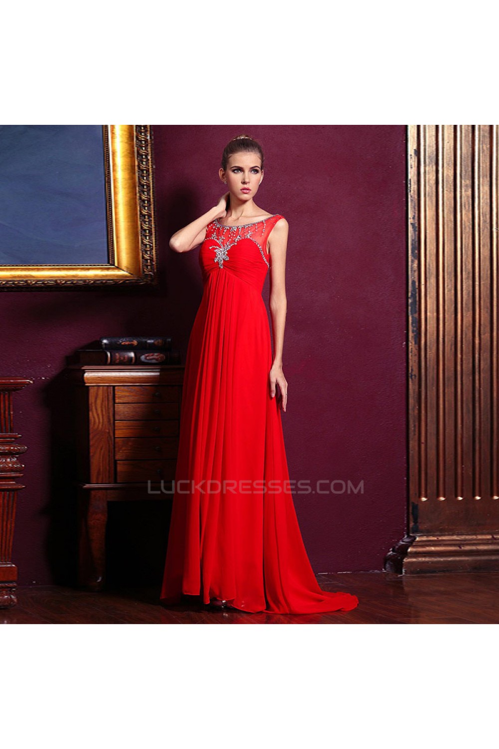 Empire Beaded Long Red Chiffon Prom Evening Maternity Evening Dresses ED011331