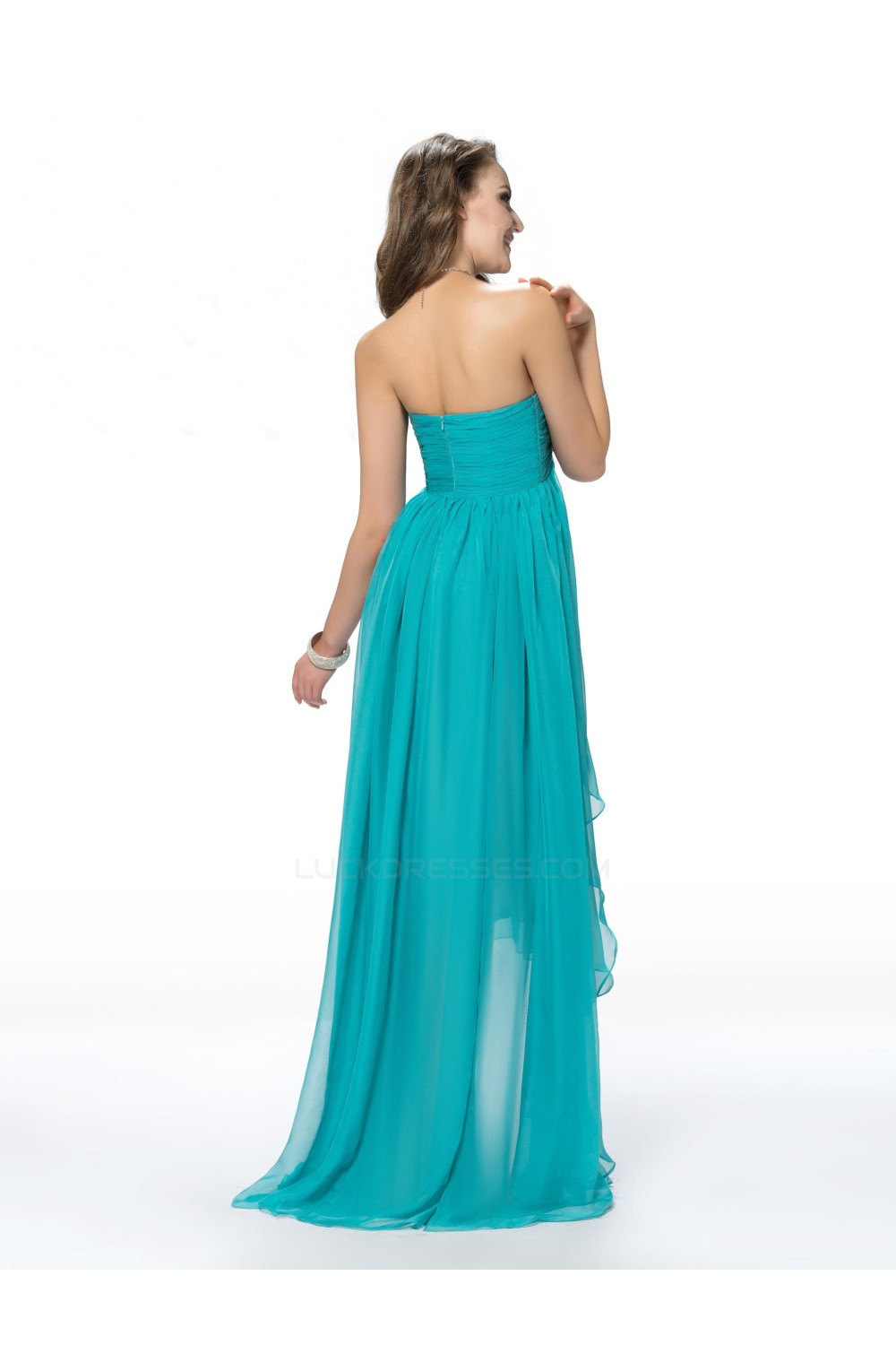 Empire High Low Strapless Beaded Long Blue Chiffon Prom Evening Formal Party Dresses/Maternity Evening Dresses ED010555