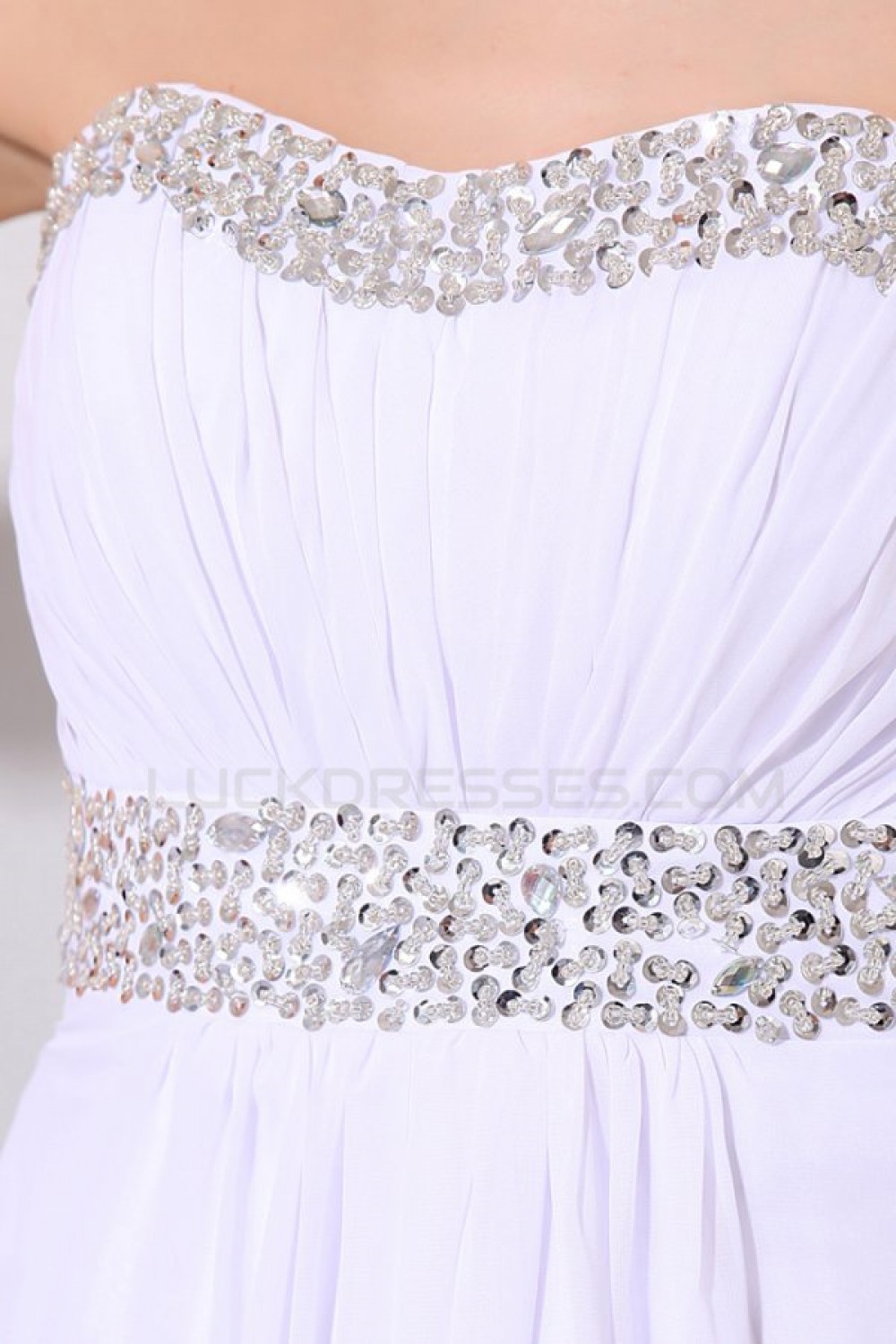 Empire Long White Chiffon Beaded Prom Evening Formal Party Dresses/Maternity Evening Dresses ED010182