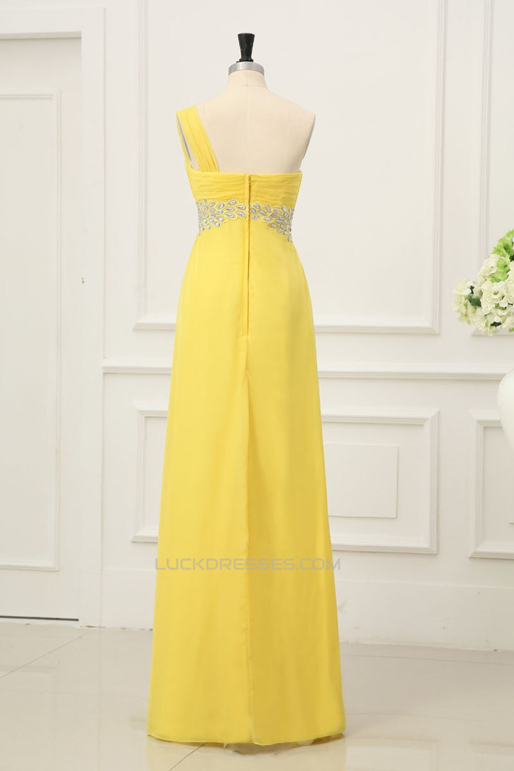 -60% Empire One-Shoulder Beaded Long Yellow Chiffon Prom Evening Formal Dresses Maternity Dresses ED011157
