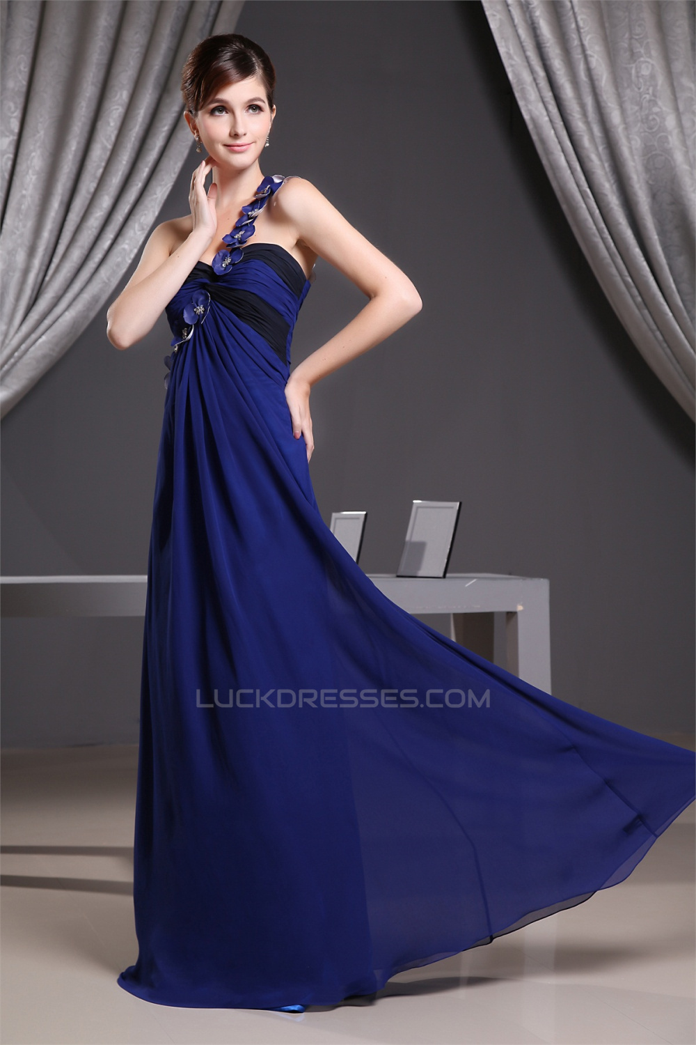 Empire One-Shoulder Beading Long Chiffon Bridesmaid Maternity Dresses 02010068