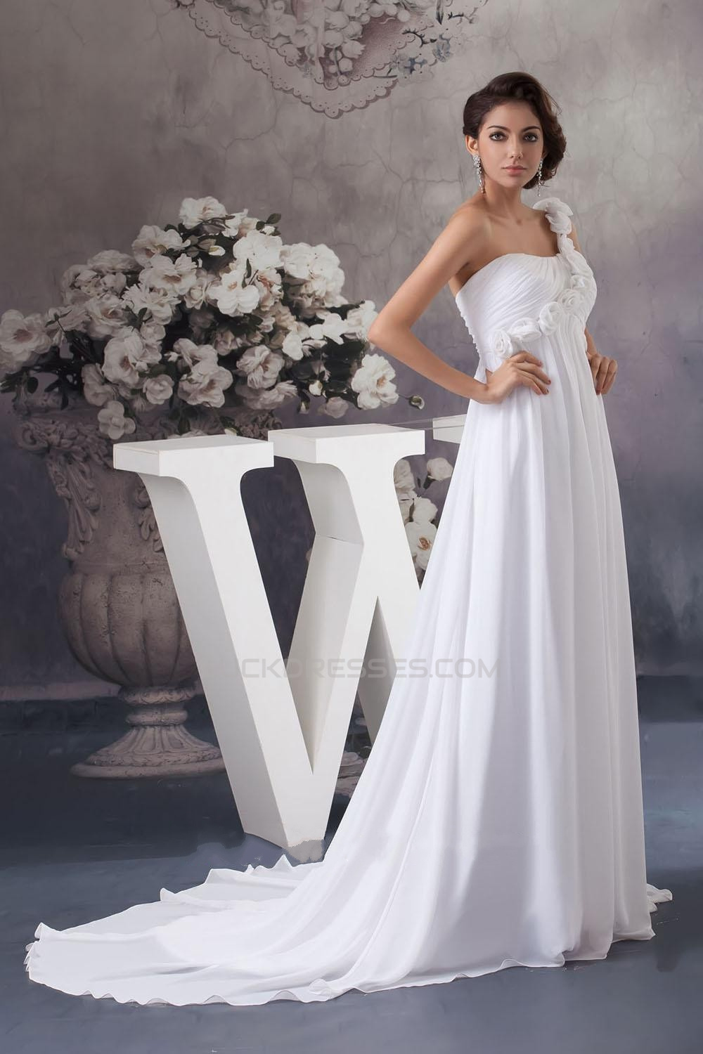 Empire One Shoulder Chiffon Bridal Maternity Wedding Dresses WD010333