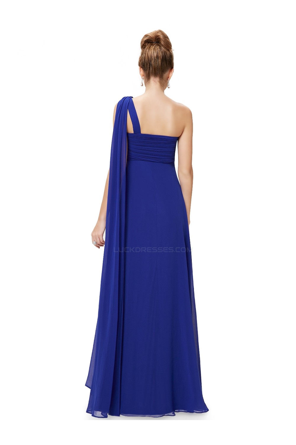 Empire One-Shoulder Long Royal Blue Chiffon Bridesmaid Dresses/Evening Dresses/Maternity Dresses BD010292
