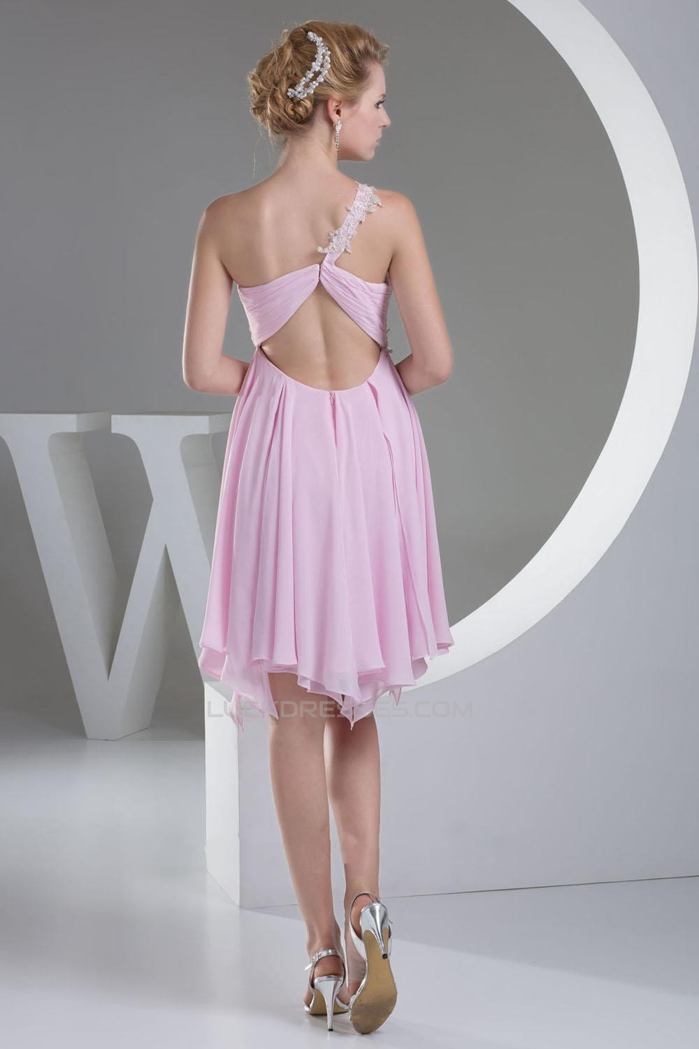 Empire One-Shoulder Short Pink Chiffon Prom Evening Dresses ED010824