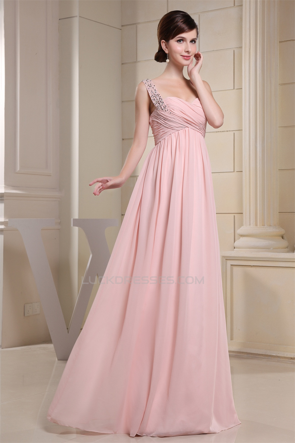 Empire Sleeveless Long Pink Chiffon Floor-Length Prom Evening Maternity Formal Evening Dresses 02020264