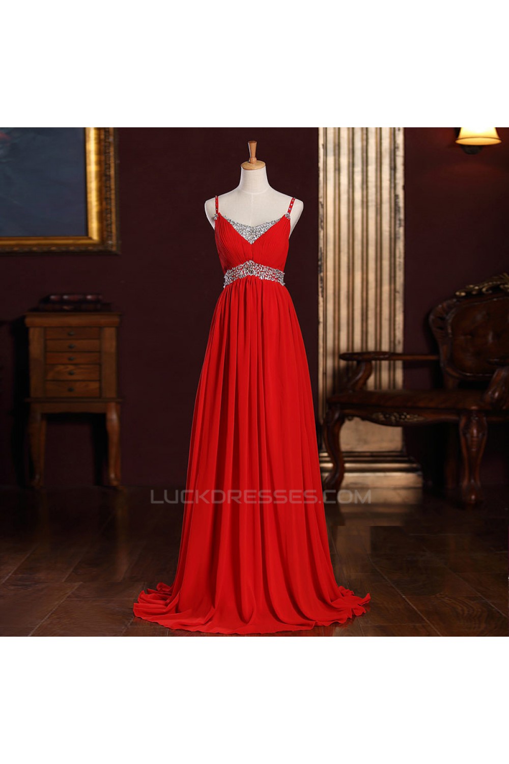 Empire Spaghetti Strap Beaded Long Chiffon Prom Evening Maternity Evening Dresses ED011364