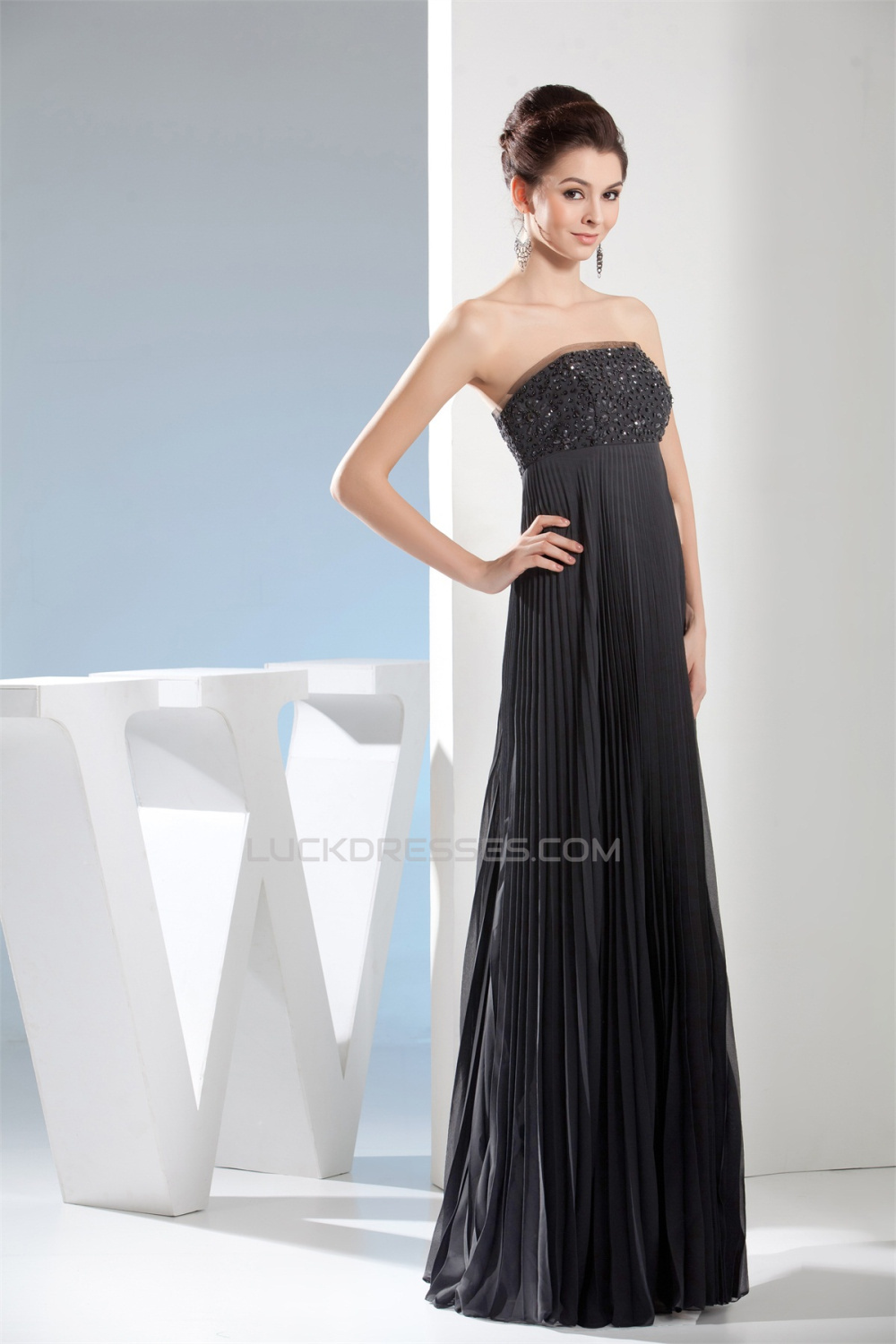 Empire Strapless Chiffon Long Black Prom/Formal Evening Dresses Maternity Evening Dresses 02020042
