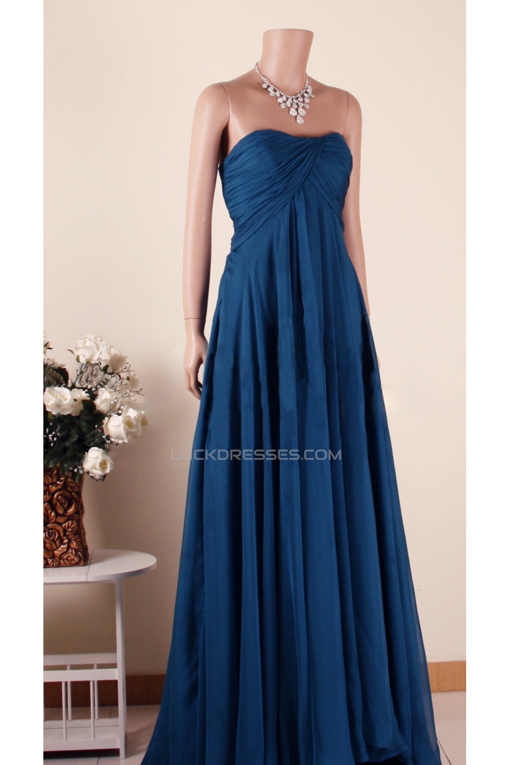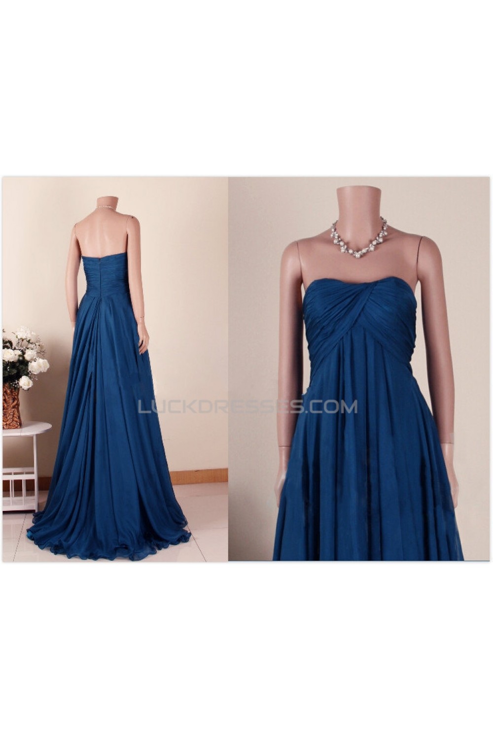 Empire Strapless Long Blue Chiffon Prom Evening Maternity Evening Dresses ED011461