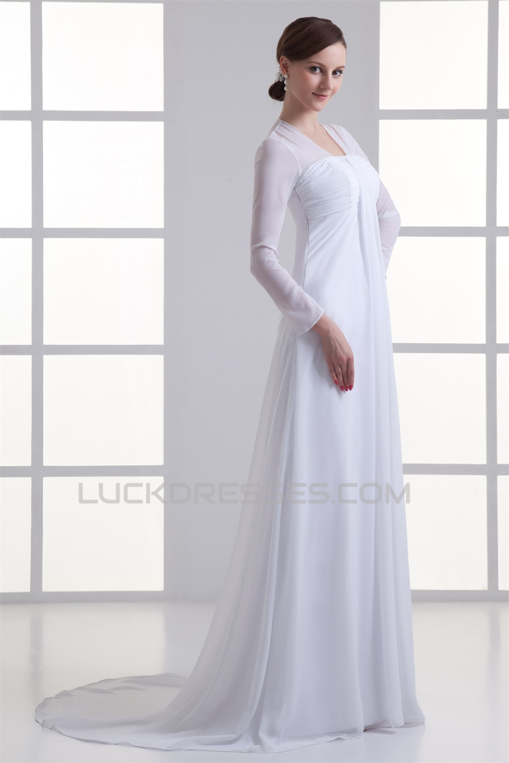Empire V-Neck Chiffon Long Sleeve Sheath/Column Wedding Dresses Maternity Wedding Dresses 2031413