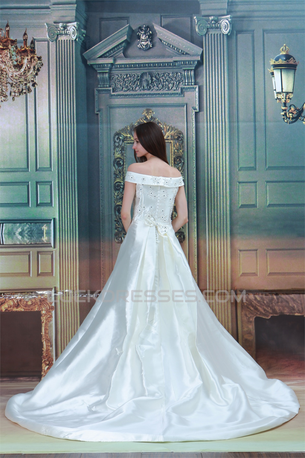 -50% Fantastic A-Line Satin Off-the-Shoulder Sleeveless Beaded Wedding Dresses 2031178