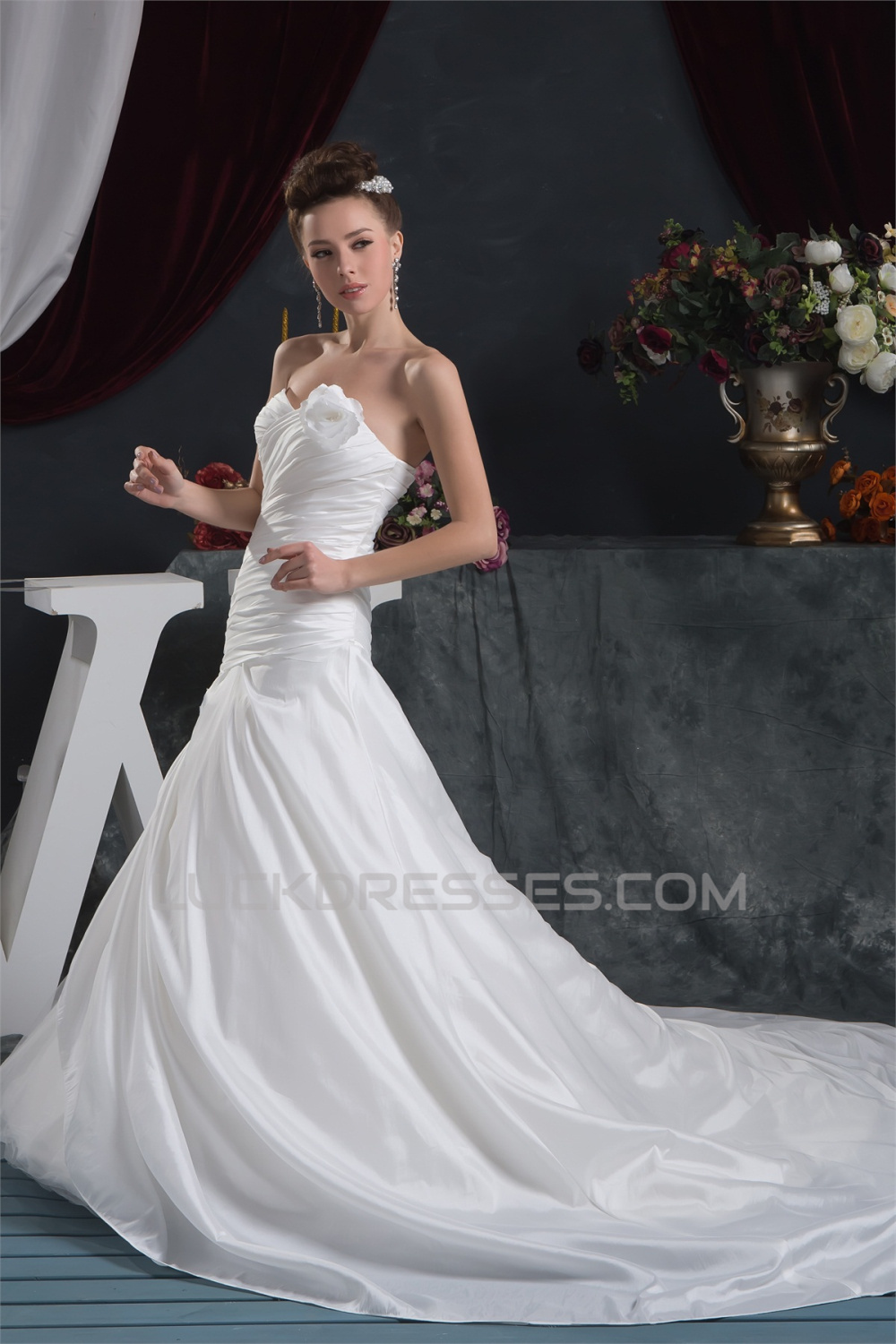-50% Fantastic A-Line Satin Taffeta Sweetheart Sleeveless Wedding Dresses 2030679