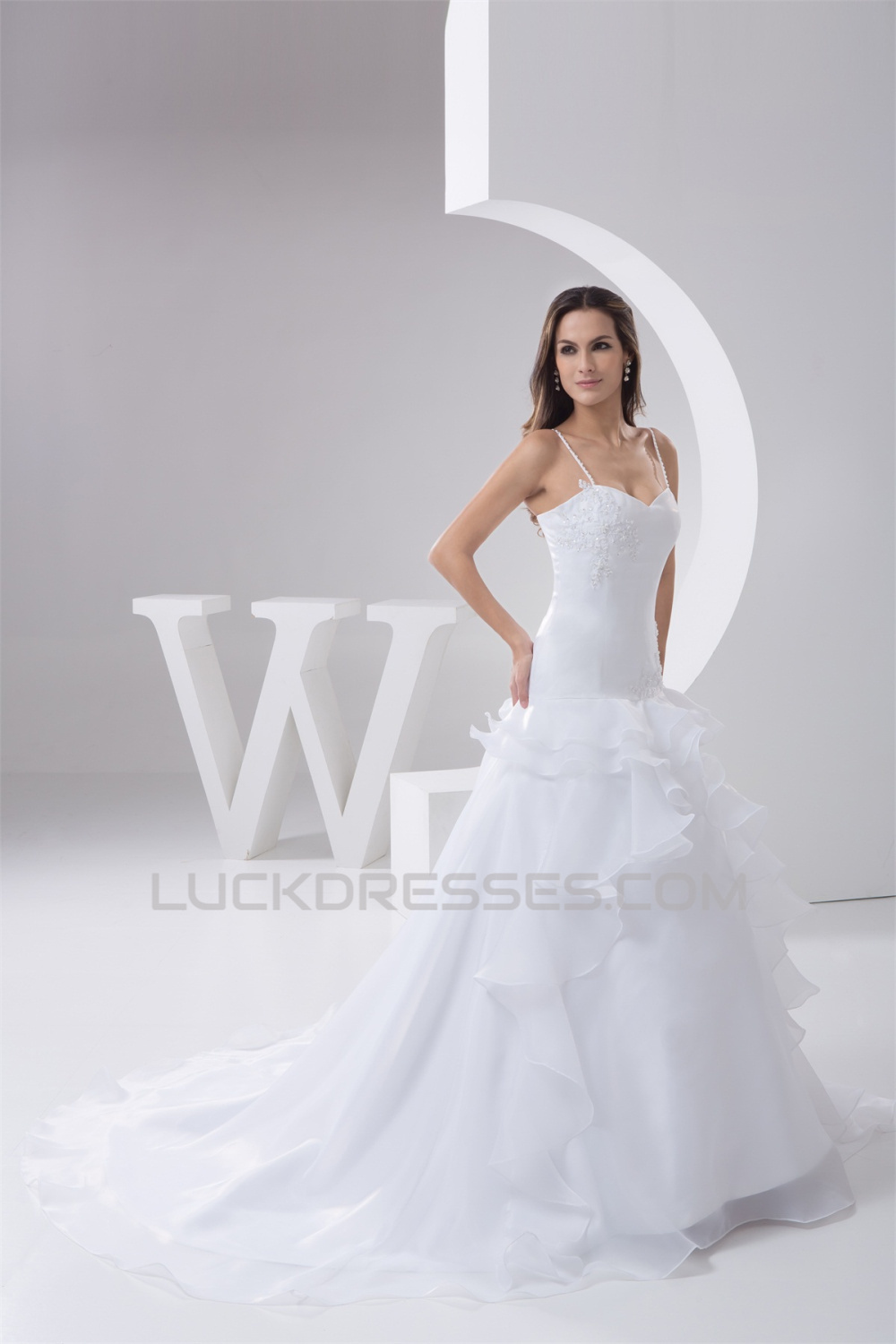 -50% Fantastic A-Line Spaghetti Straps Sleeveless Satin Wedding Dresses 2030685