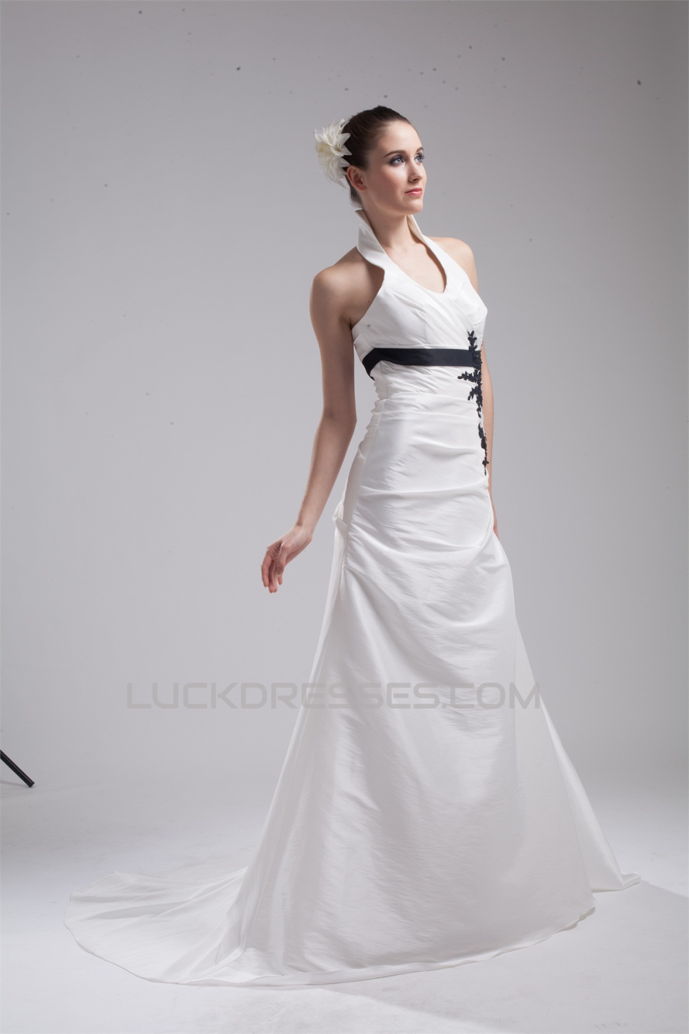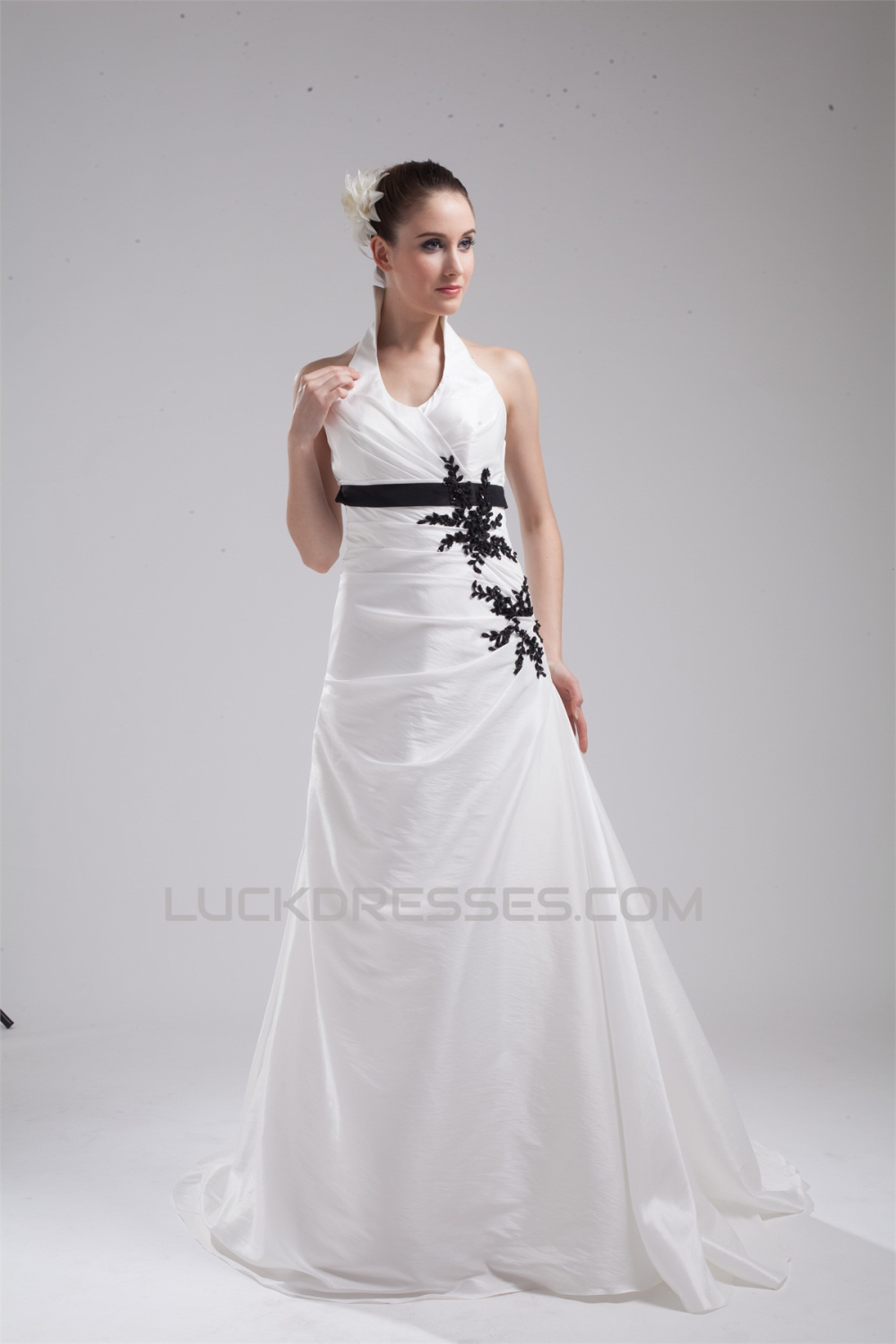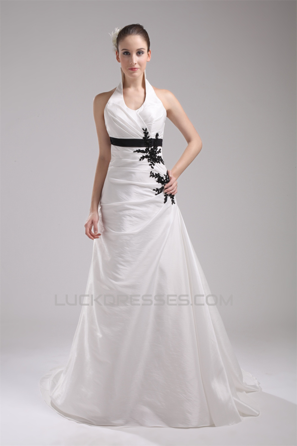 -50% Fantastic Halter Taffeta A-Line Sleeveless Wedding Dresses 2030137