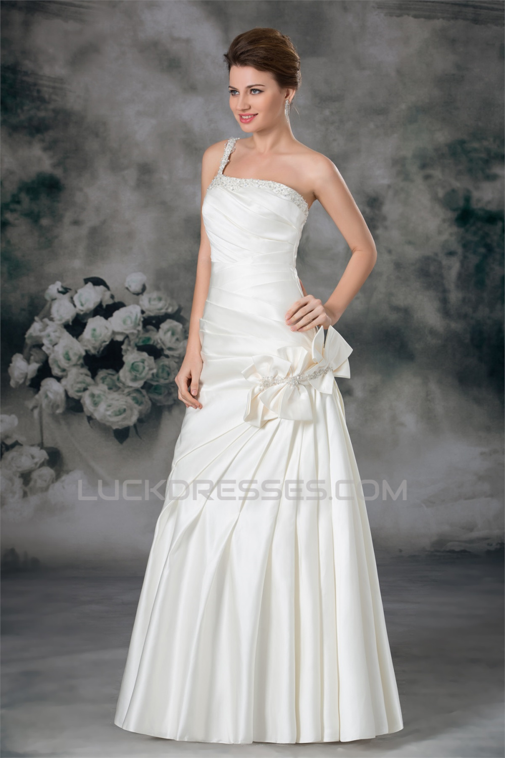 -50% Fantastic One-Shoulder Satin Sleeveless A-Line Wedding Dresses 2031180