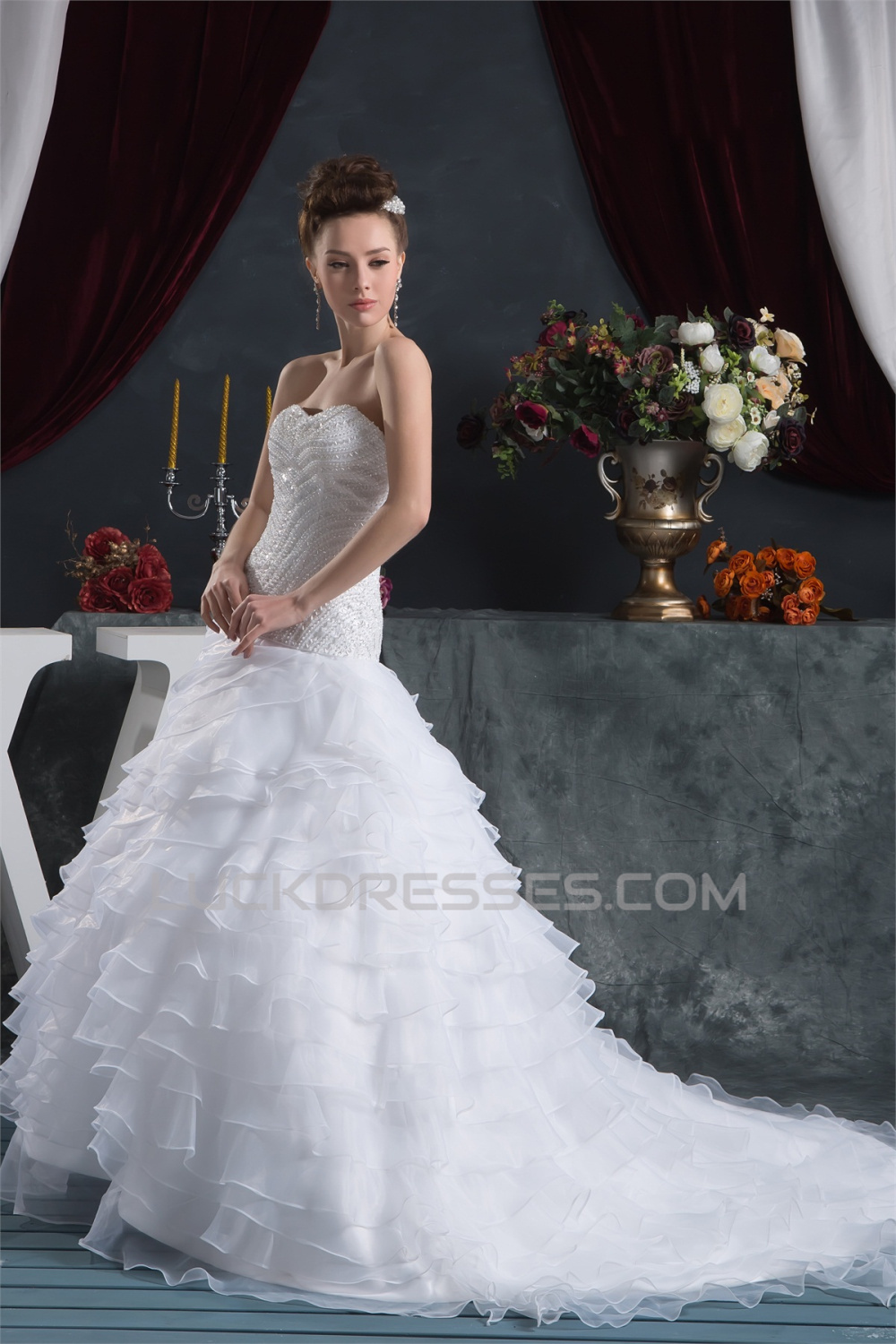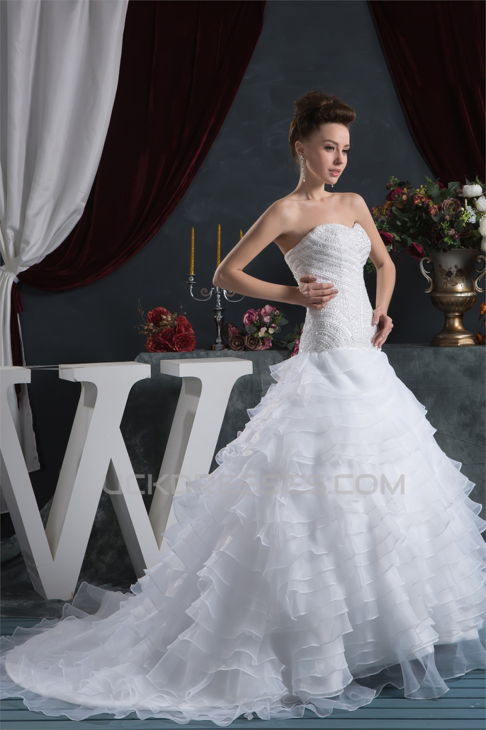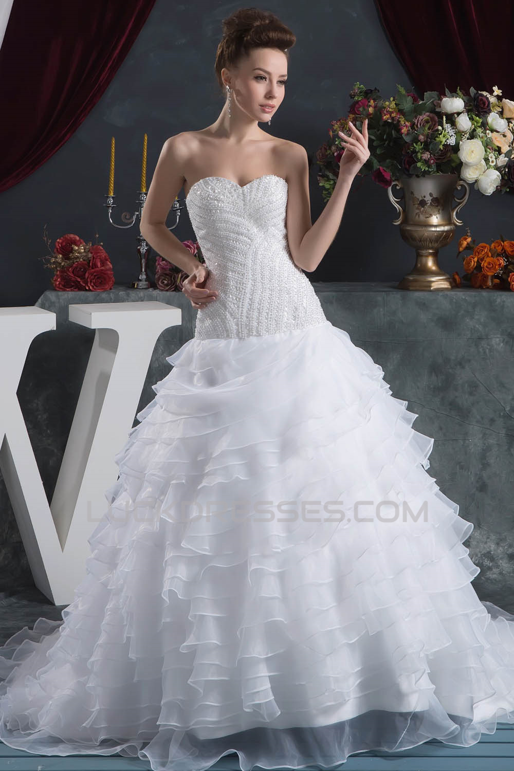 -50% Fantastic Satin Organza Ball Gown Sleeveless Sweetheart Beaded Wedding Dresses 2030690