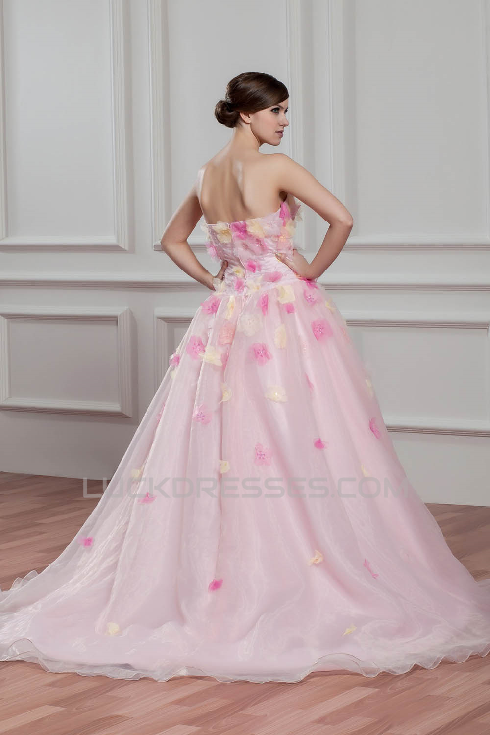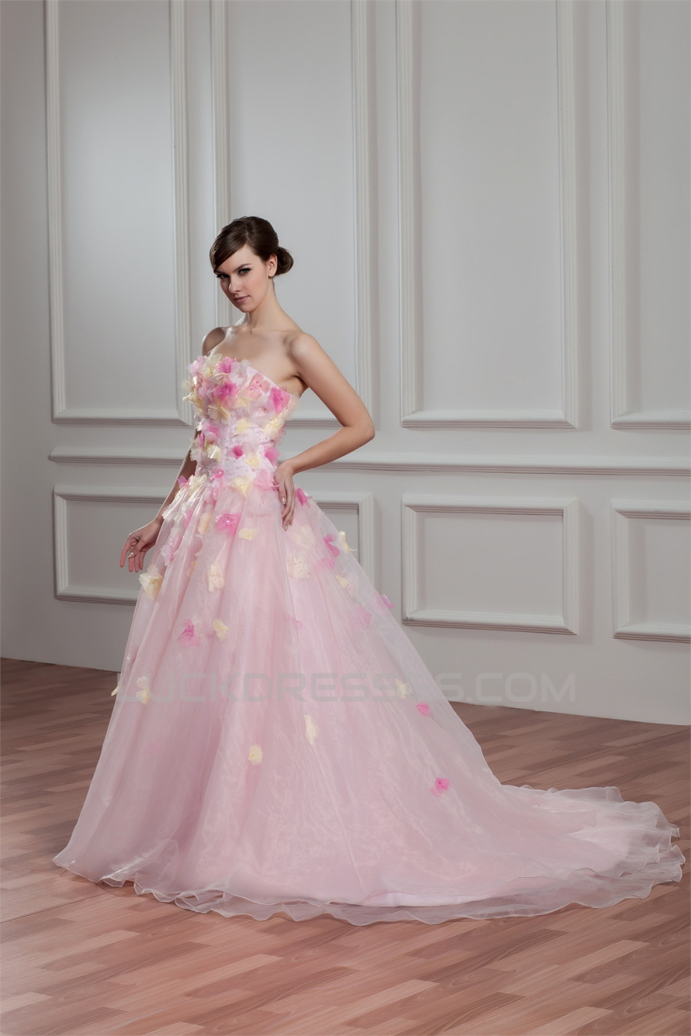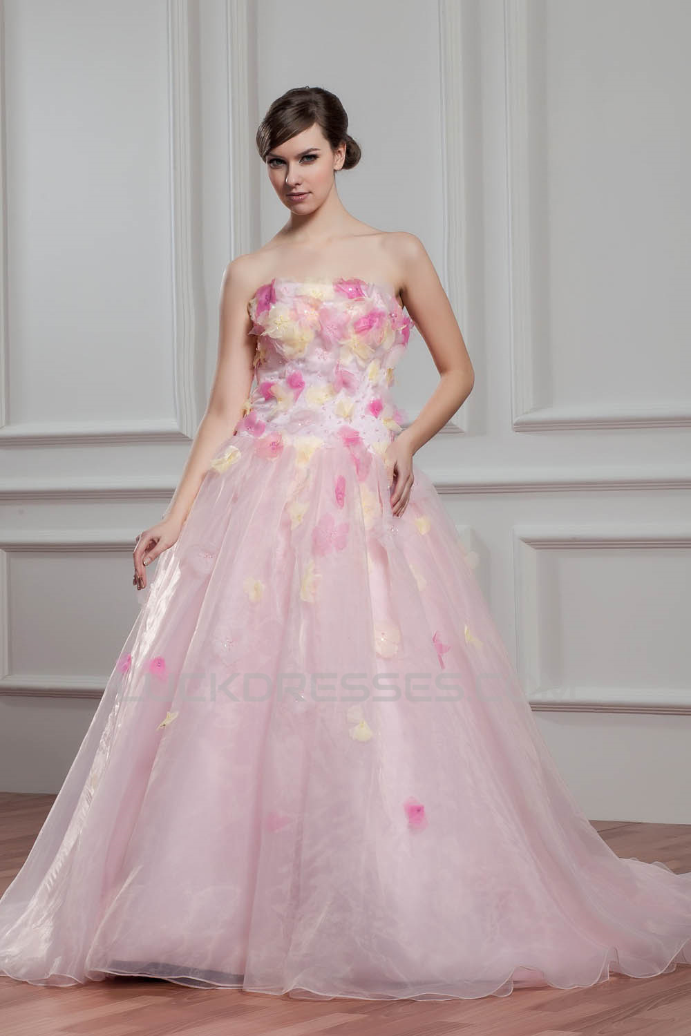 -50% Fantastic Strapless A-Line Sleeveless Satin Organza Wedding Dresses 2030693