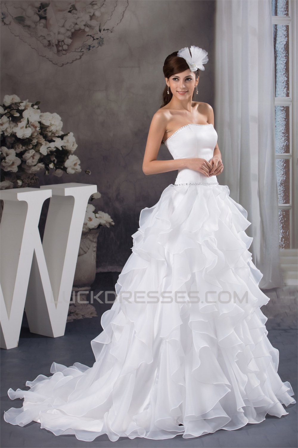 -50% Fantastic Strapless Sleeveless A-Line Satin Wedding Dresses 2030695