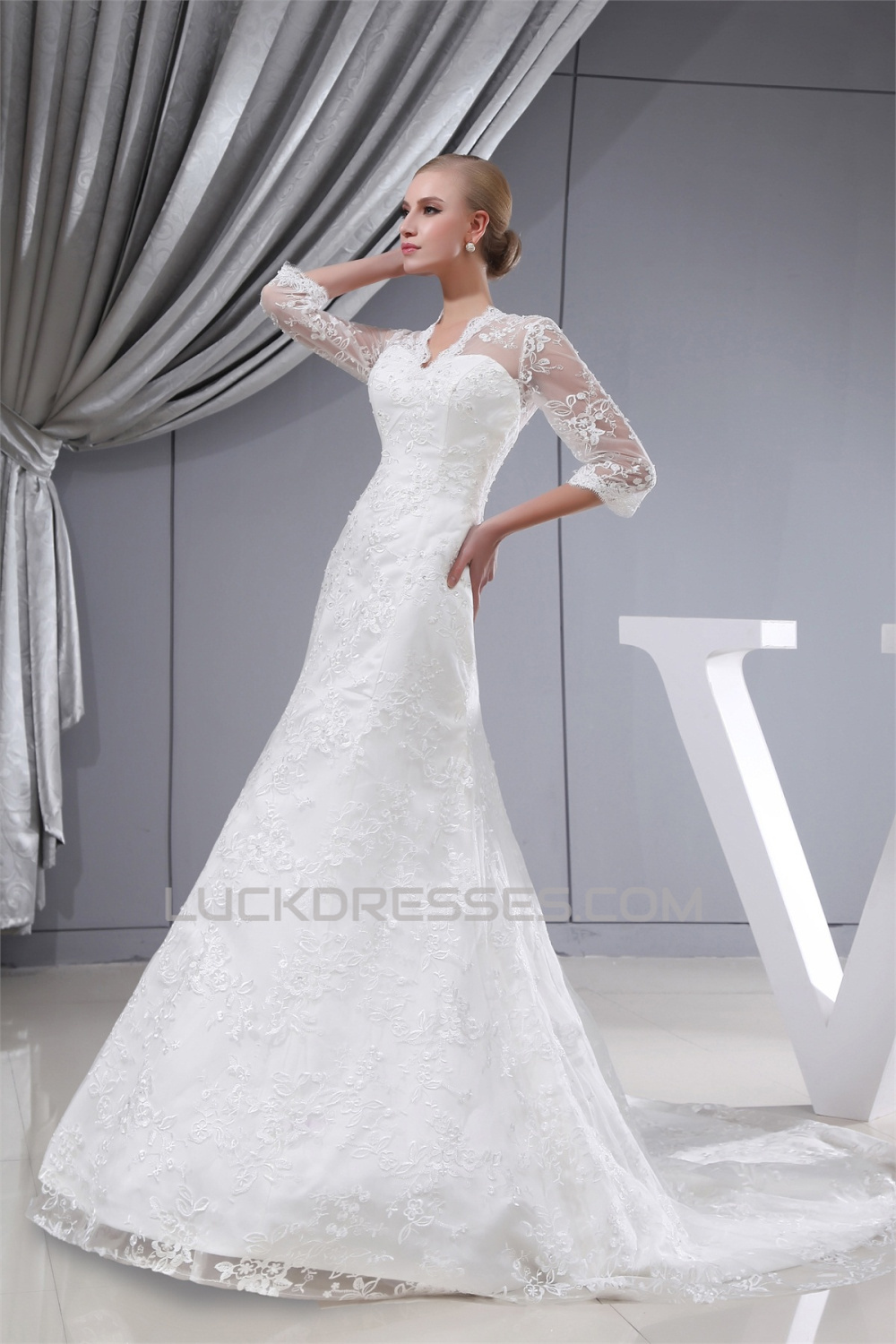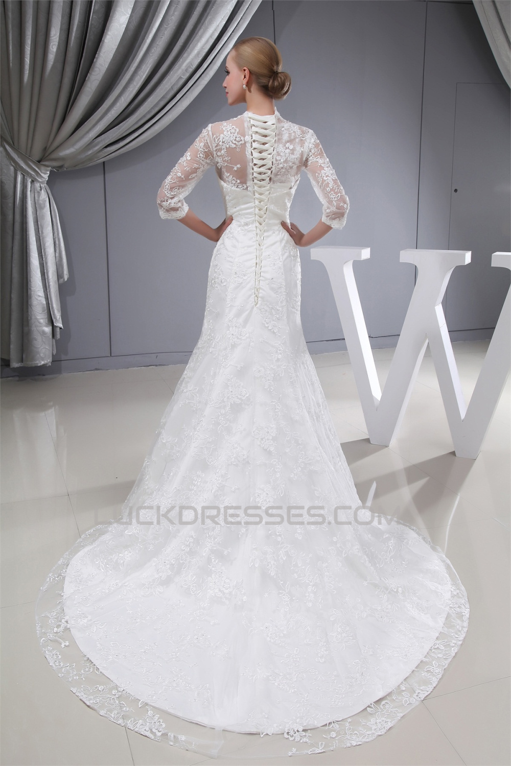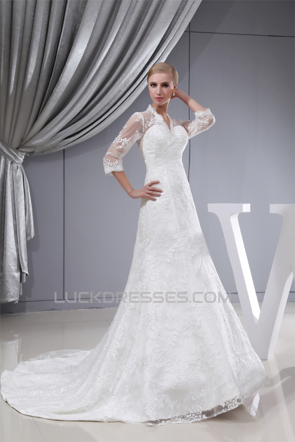 Fantastic Straps A-Line Satin Lace Long Sleeve Wedding Dresses 2030144