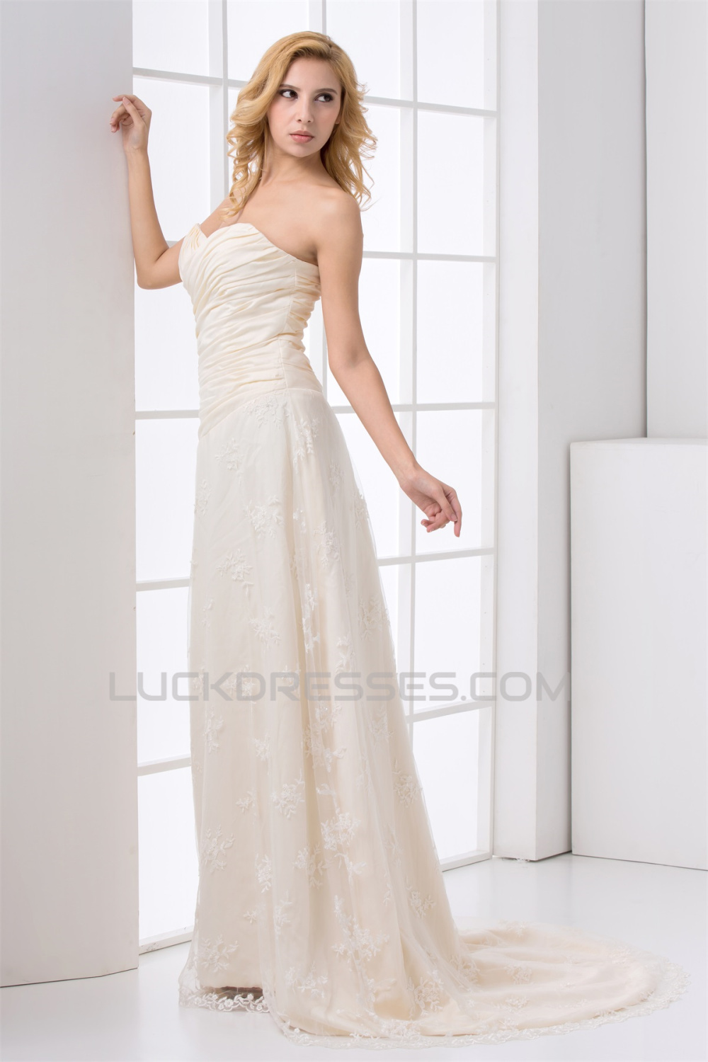 Fashionable Satin Lace Sweetheart A-Line Sleeveless Sweet Wedding Dresses 2031191
