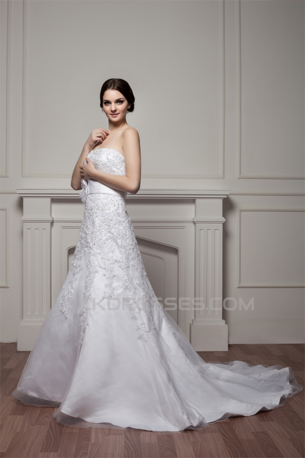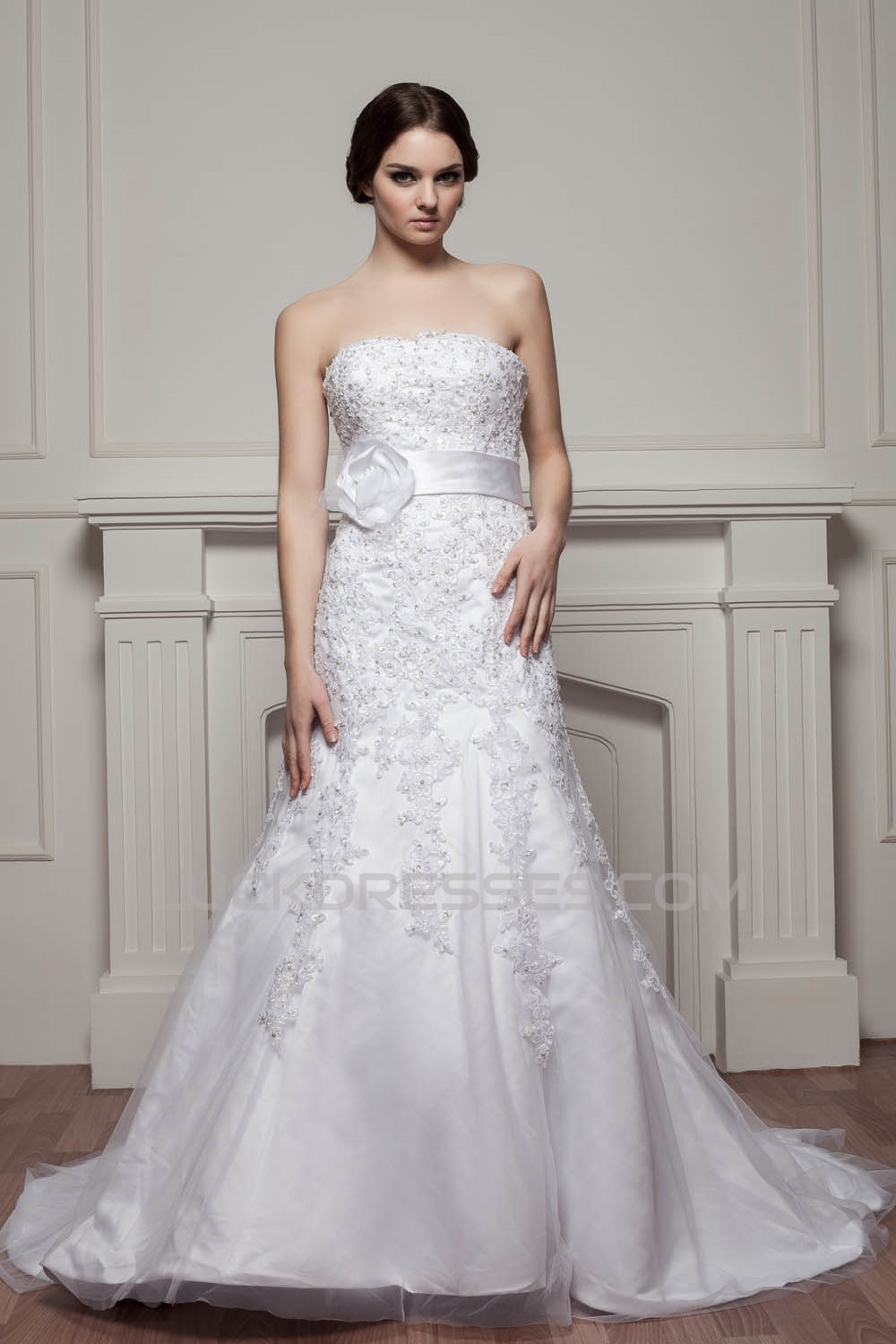 -50% Fashionable Sleeveless A-Line Beaded Lace Strapless Wedding Dresses 2030706