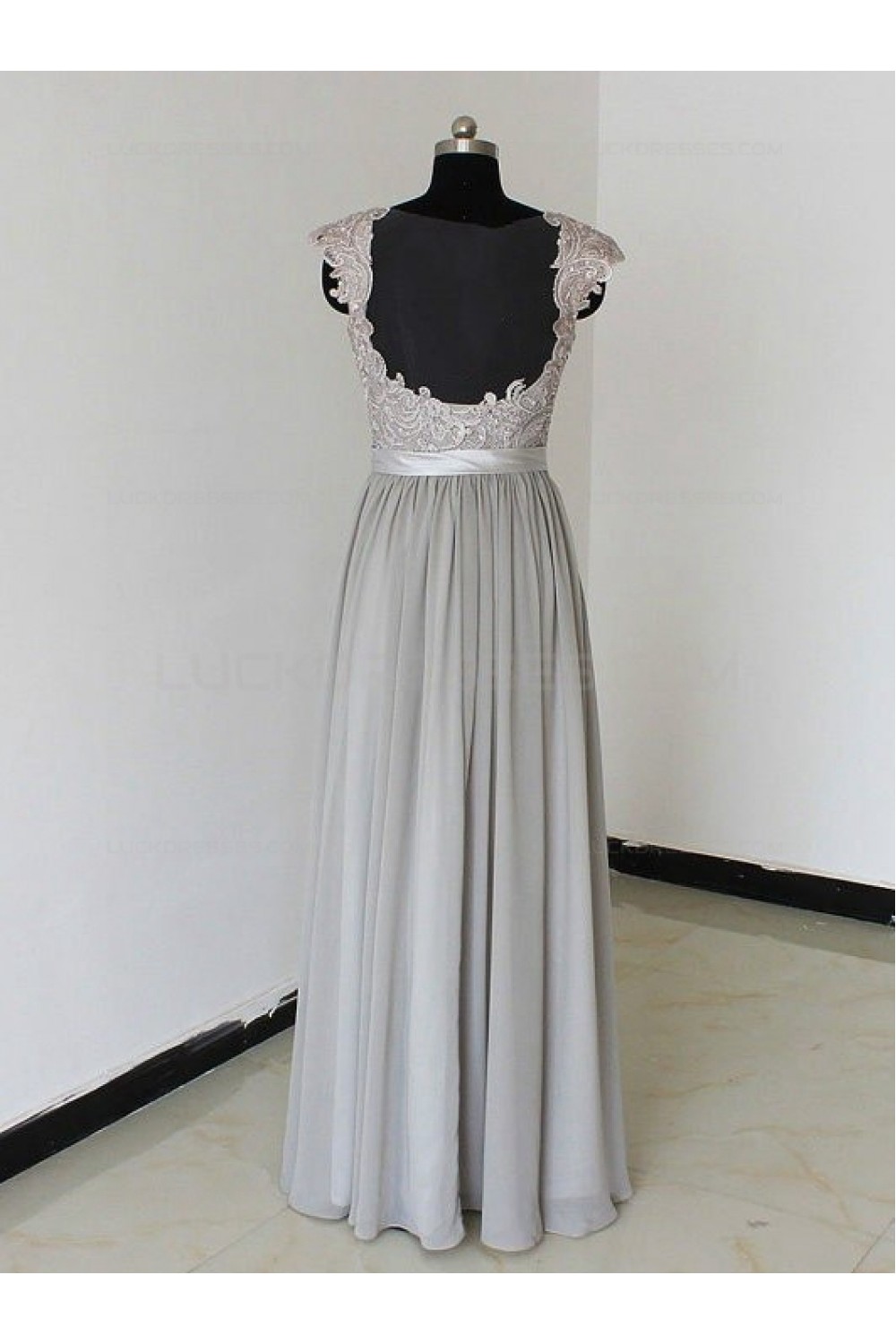 -47% Floor-Length Cap-Sleeves Chiffon Lace Backless Wedding Party Dresses Bridesmaid Dresses 3010090
