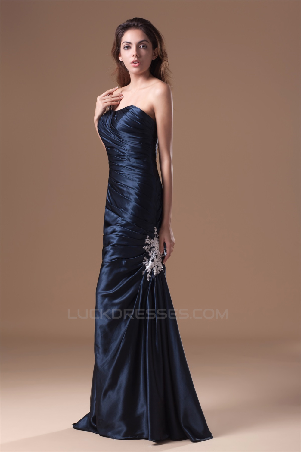 Floor-Length One-Shoulder Elastic Woven Satin Prom/Formal Evening Dresses 02020746