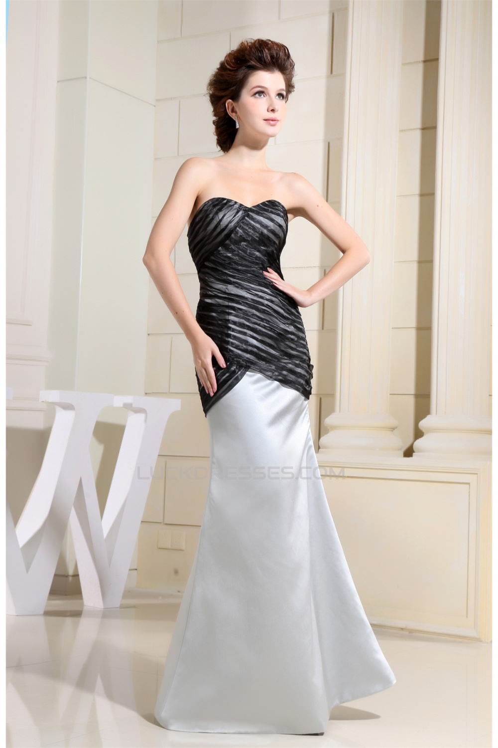 Floor-Length Satin Tulle Sleeveless Mermaid/Trumpet Black White Prom/Formal Evening Dresses 02020193