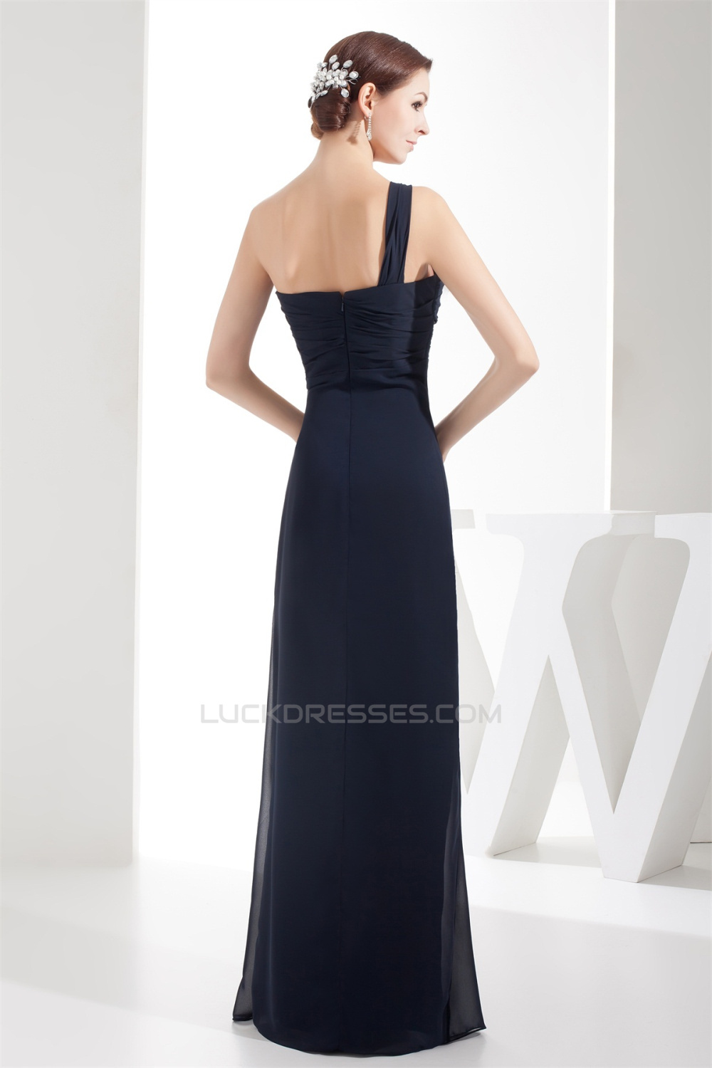 Floor-Length Strapless Sheath/Column Long Navy Blue Chiffon Bridesmaid Dresses 02010048