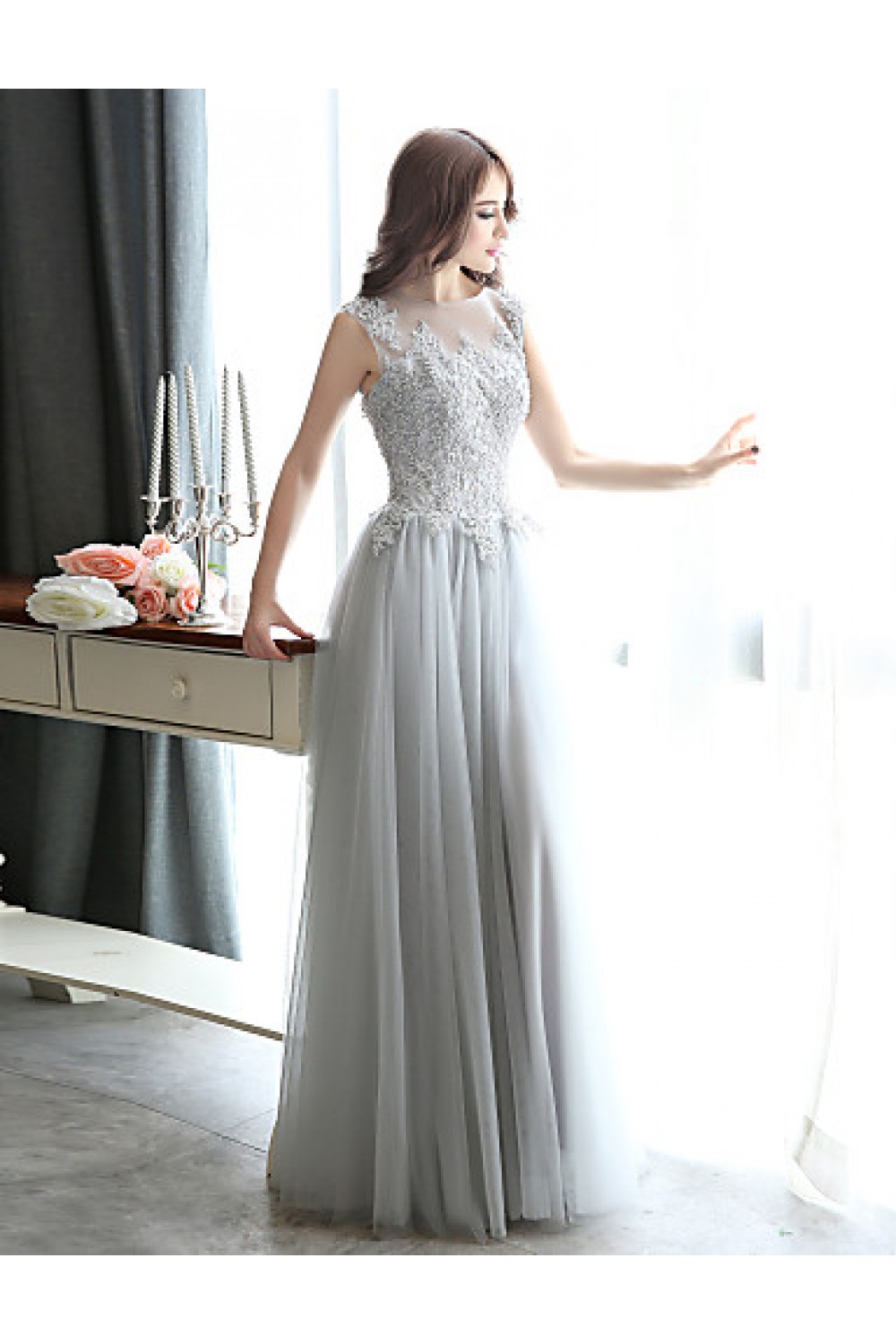 Formal Evening Black Tie Gala Dress Sheath Column Bateau Floor-length Tulle with Appliques Beading Dresses ED010068