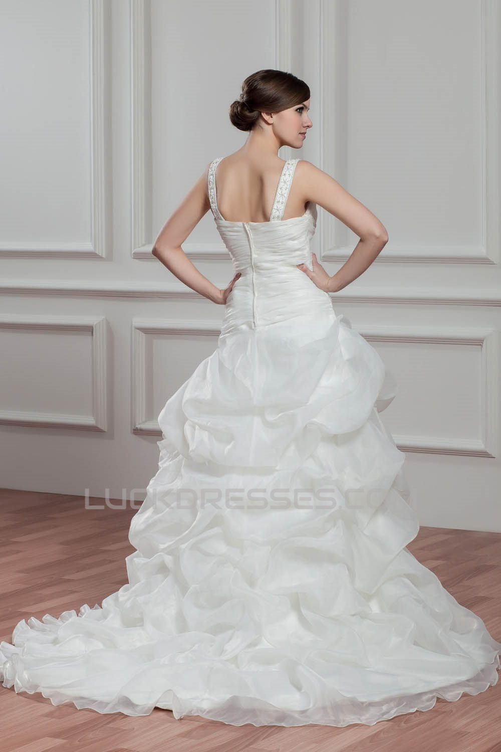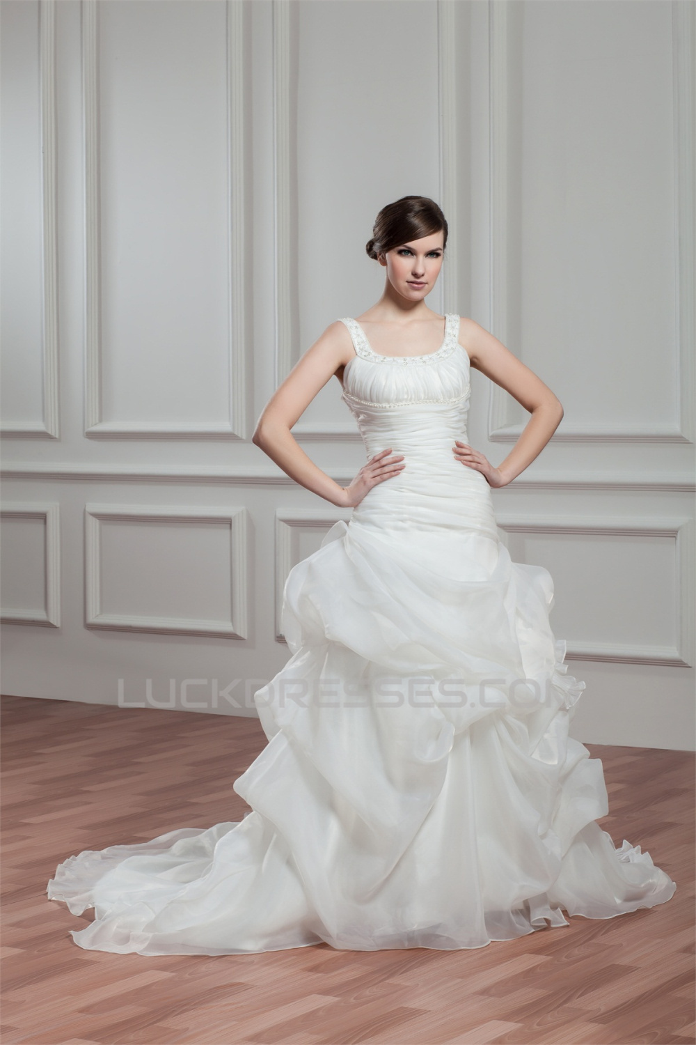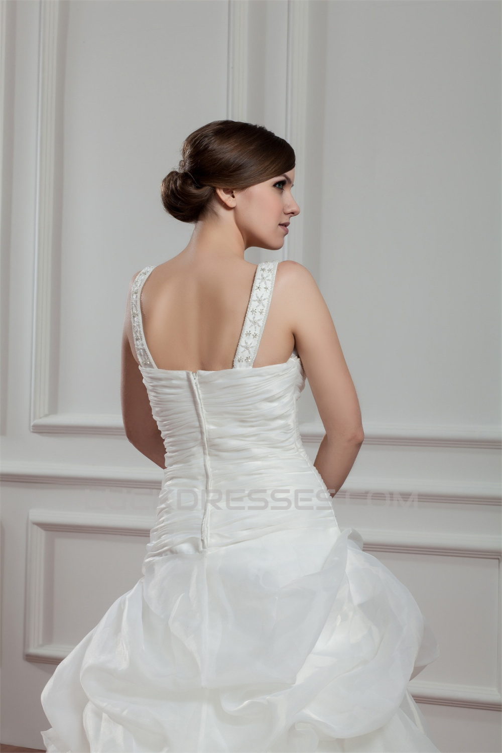 Great A-Line Sleeveless Straps Satin Organza Wedding Dresses 2030723