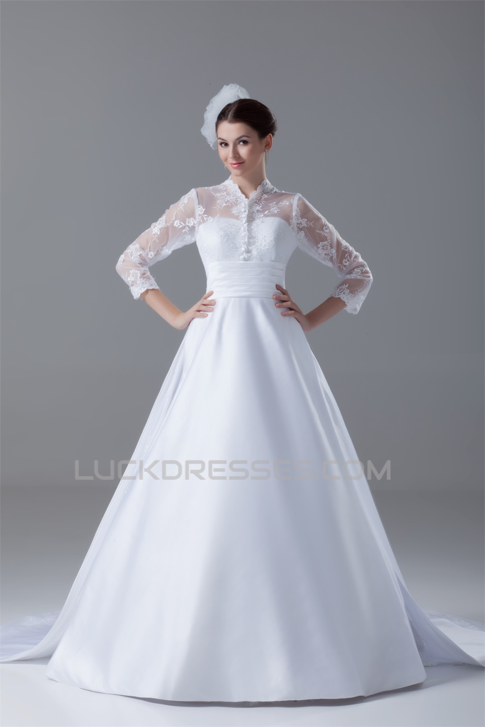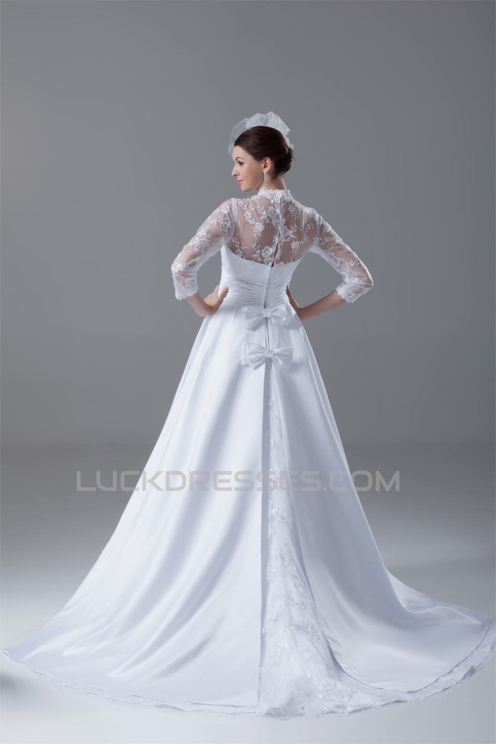 Great Long Sleeve High-Neck Satin Lace A-Line Wedding Dresses 2031214