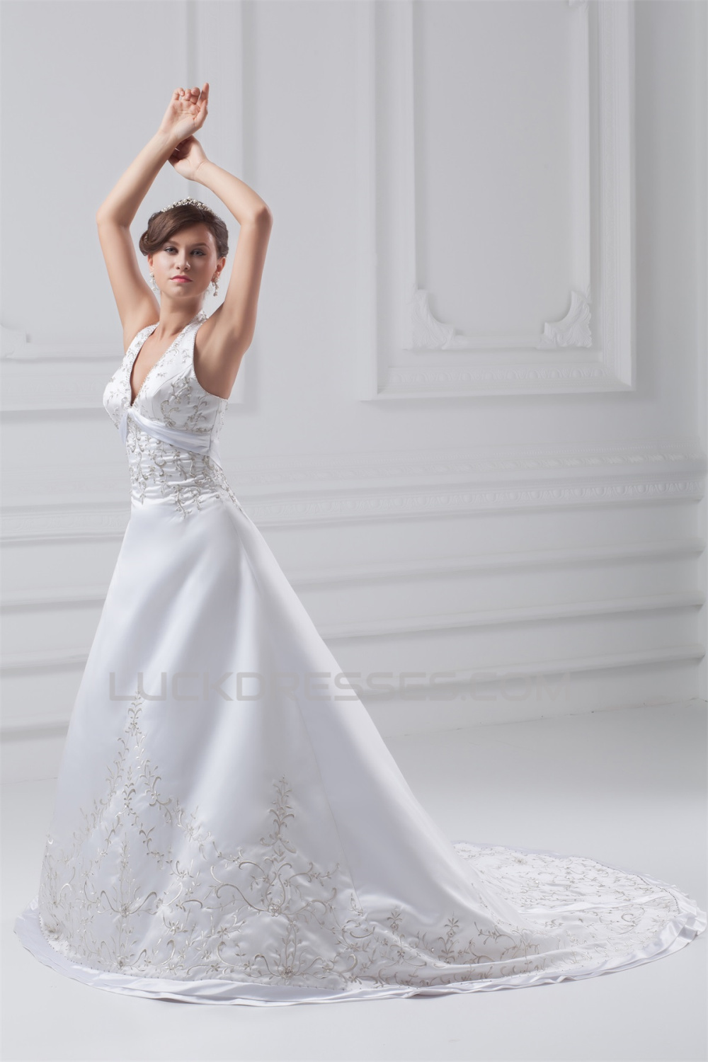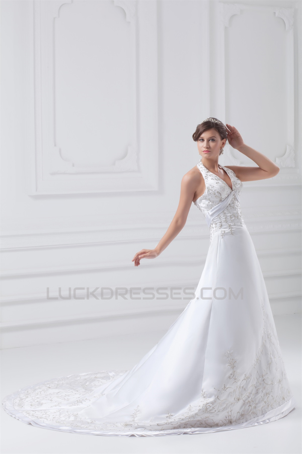 Great Satin A-Line Halter Sleeveless Wedding Dresses 2031215