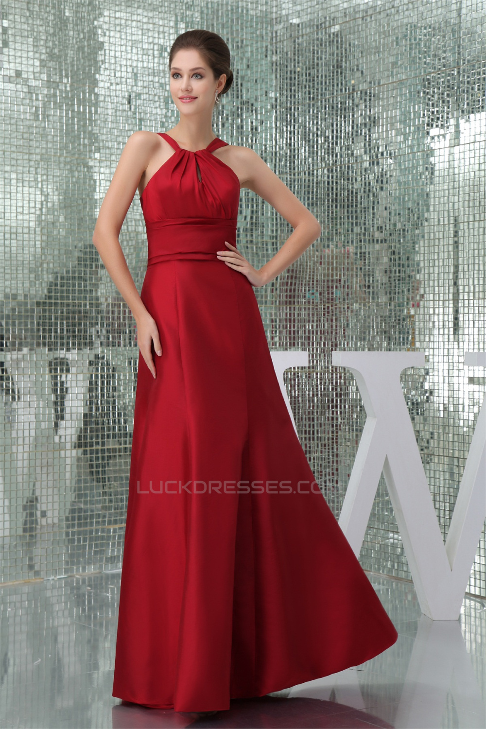 Halter Floor-Length Ruffles Sleeveless Taffeta Long Red Bridesmaid Dresses 02010057