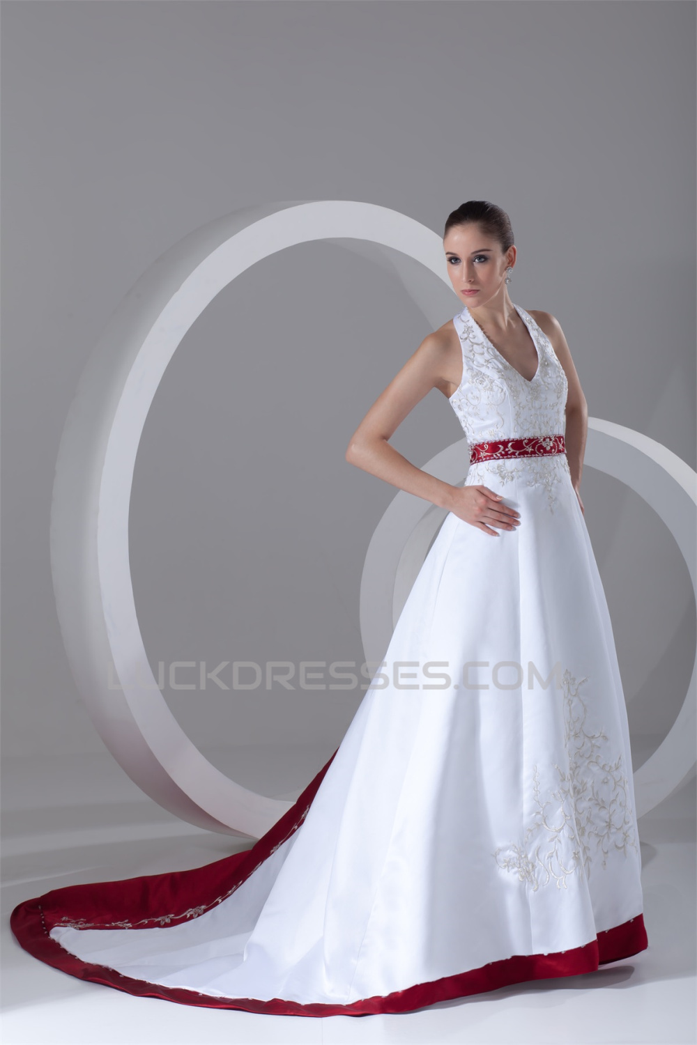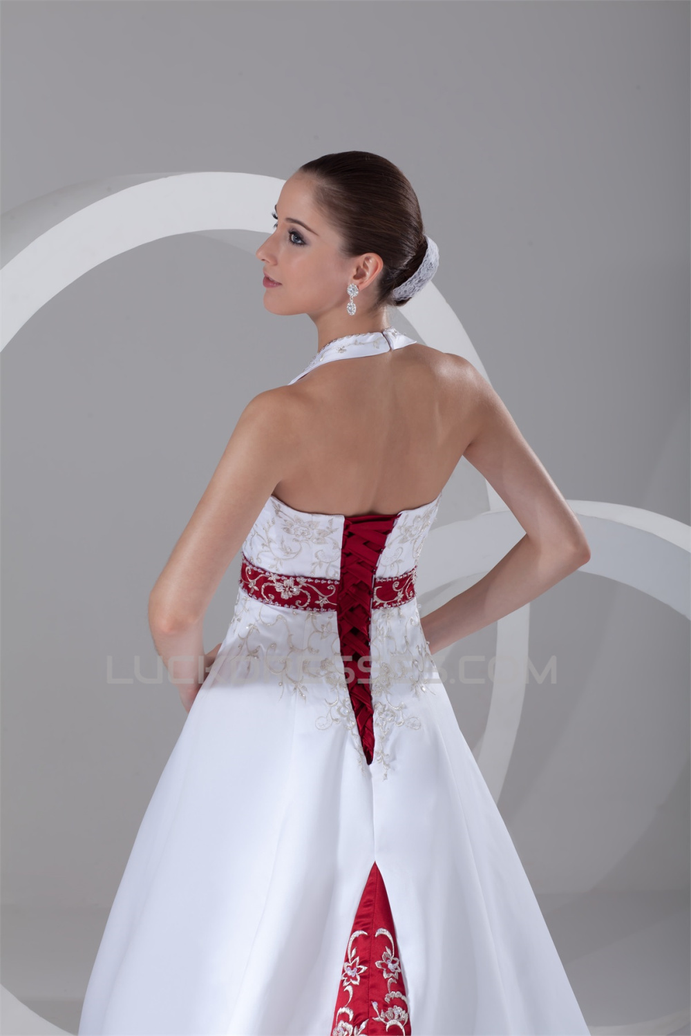 Halter Sleeveless A-Line Satin Best Wedding Dresses 2031203