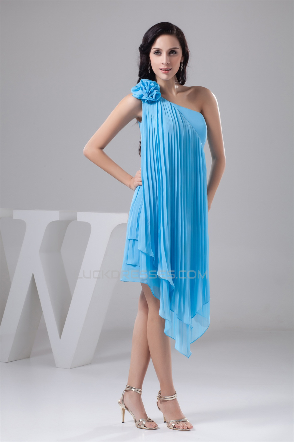 Handmade Flowers Ruffled Chiffon Short Blue Bridesmaid Dresses 02010412